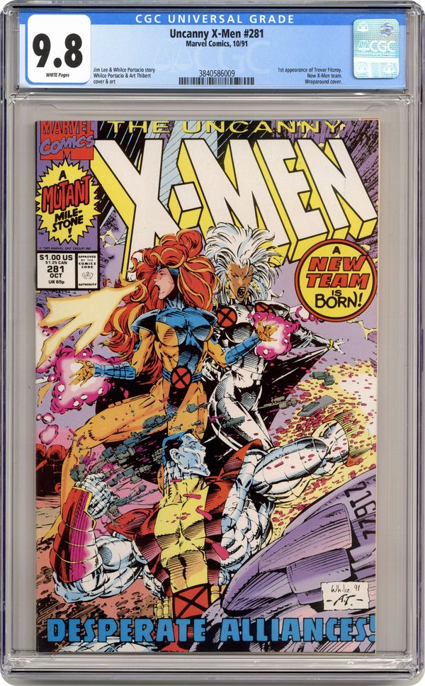 FIRST PRINTING with WHITE title logo (second printing has a red title logo). "Fresh Upstart!" Story by Jim Lee, Whilce Portacio, and John Byrne. Art by Whilce Portacio and Art Thibert. It's a new era for Marvel's Merry Mutants. Xavier's original students have returned home and reunited with the X-Men to assemble the greatest team of super-human mutants ever assembled. But with new a new team comes new threats. Who are the Upstarts and what kind of threat do they pose to the X-Men, and mutantkind in general? Witness the ultimate fate of Donald Pierce, the Reavers, the White Queen and her Hellions. NOTE: 1st appearance of Fitzroy. ****death of Donald Pierce, the Reavers, Jetstream, Beef, and Tarot. 1st printing - white title. 36 pgs. Cover price $1.00. Grade: CGC 9.8 explanation of grade Condition: Used (collectible)