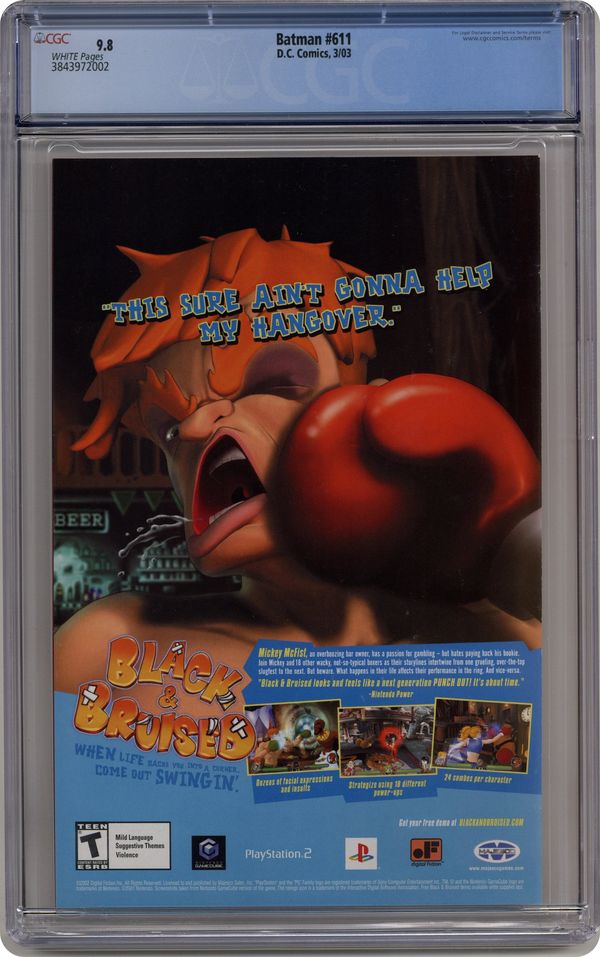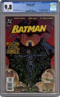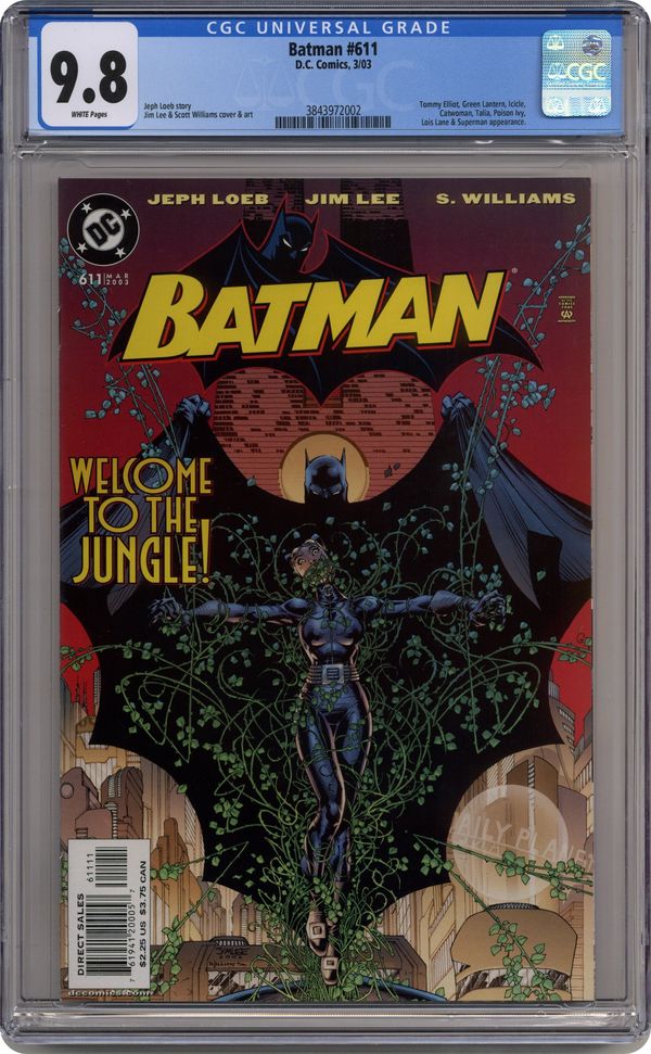 WRITTEN BY JEPH LOEB; ART AND COVER BY JIM LEE AND SCOTT WILLIAMS Jeph Loeb & Jim Lee continue their run on BATMAN with Part 4 of "Hush." Fun in Metropolis! Catwoman and Batman journey to the City of Tomorrow to track down Poison Ivy. This capricious couple thinks it has the upper hand but soon finds Ivy has something ? or someone ? up her sleeve. And keep your eyes peeled for a mysterious flying hero whose deeds inspired a young Bruce Wayne. 36 Pages, Full Color. Cover price $2.25. Grade: CGC 9.8 explanation of grade Condition: Used (collectible)