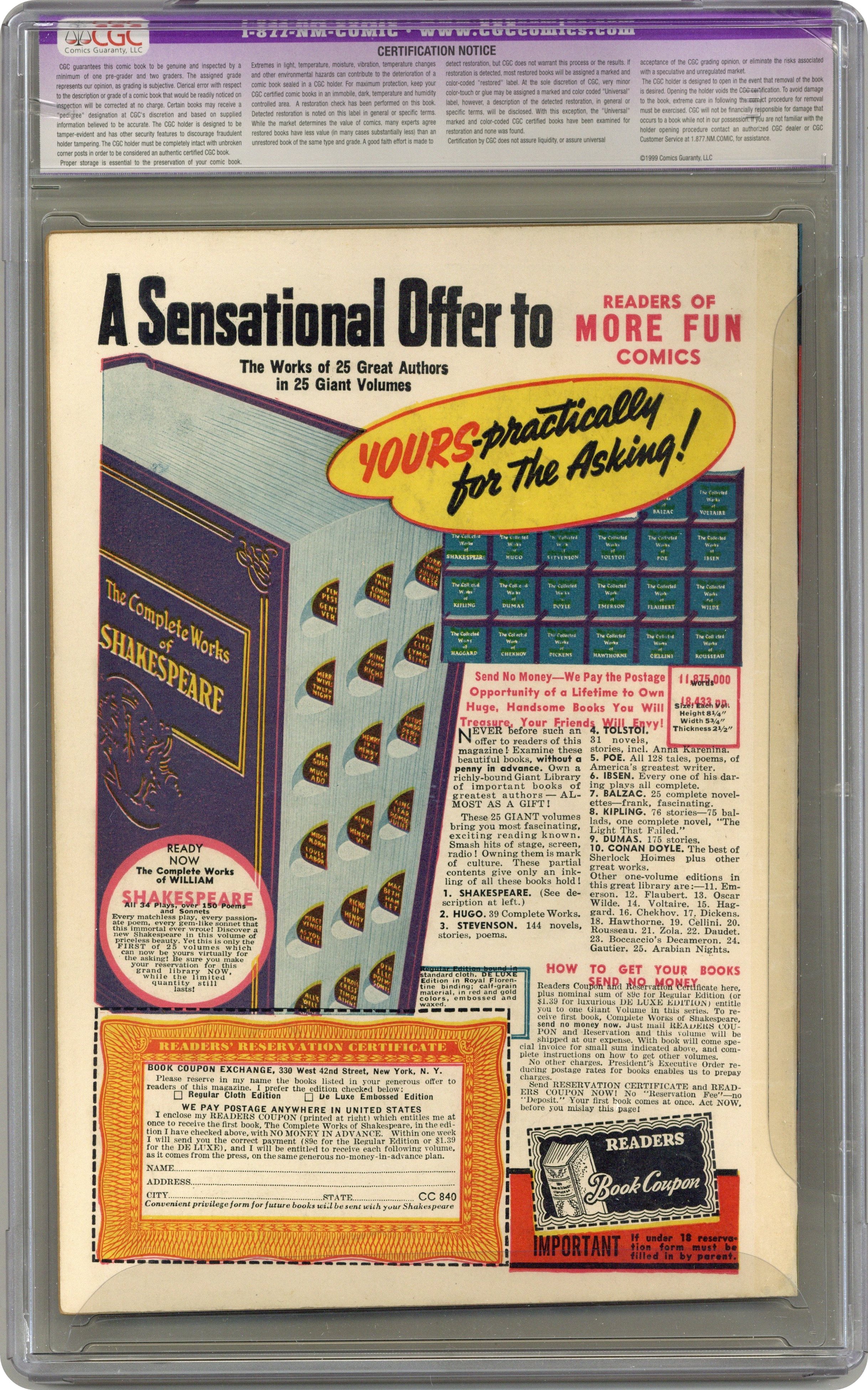 More Fun Comics (1935) 58 CGC 7.5 Restored