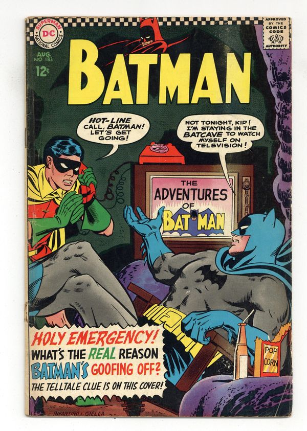 Cover pencils by Carmine Infantino, inks by Joe Giella. "A Touch of Poison Ivy!", script by Robert Kanigher, pencils by Sheldon Moldoff (as Bob Kane), inks by Joe Giella; Missing the imprisoned Poison Ivy, the Caped Crusader receives a gift from her and she promises to repent; Batman visits her, but he is placed under her spell, and she uses him to make good her escape. Cap's Hobby Hints activity half-page by Henry Boltinoff. The Policeman Is Your Friend! public service announcement, script by Jack Schiff, art by Sheldon Moldoff. Letter from future comics writer Mike Friedrich. "Batman's Baffling Turnabout!", script by Gardner Fox, pencils by Sheldon Moldoff (as Bob Kane), inks by Joe Giella; While chasing crooks into a warehouse, Batman falls through a trapdoor and is captured while one of the crooks impersonates the Caped Crusader; A tell-tale clue alerts Robin that this is an imposter and he deals appropriately with the situation to find the real crime fighter. Letters to the editor from Biljo White, Irene Vartanoff, and comics writer Mike Friedrich. Statement of ownership--average print run 694,000; average paid circulation 453,745. 36 Pages, Full Color. Cover price $0.12. Grade: GD+ 2.5 explanation of grade Condition: Used (collectible)