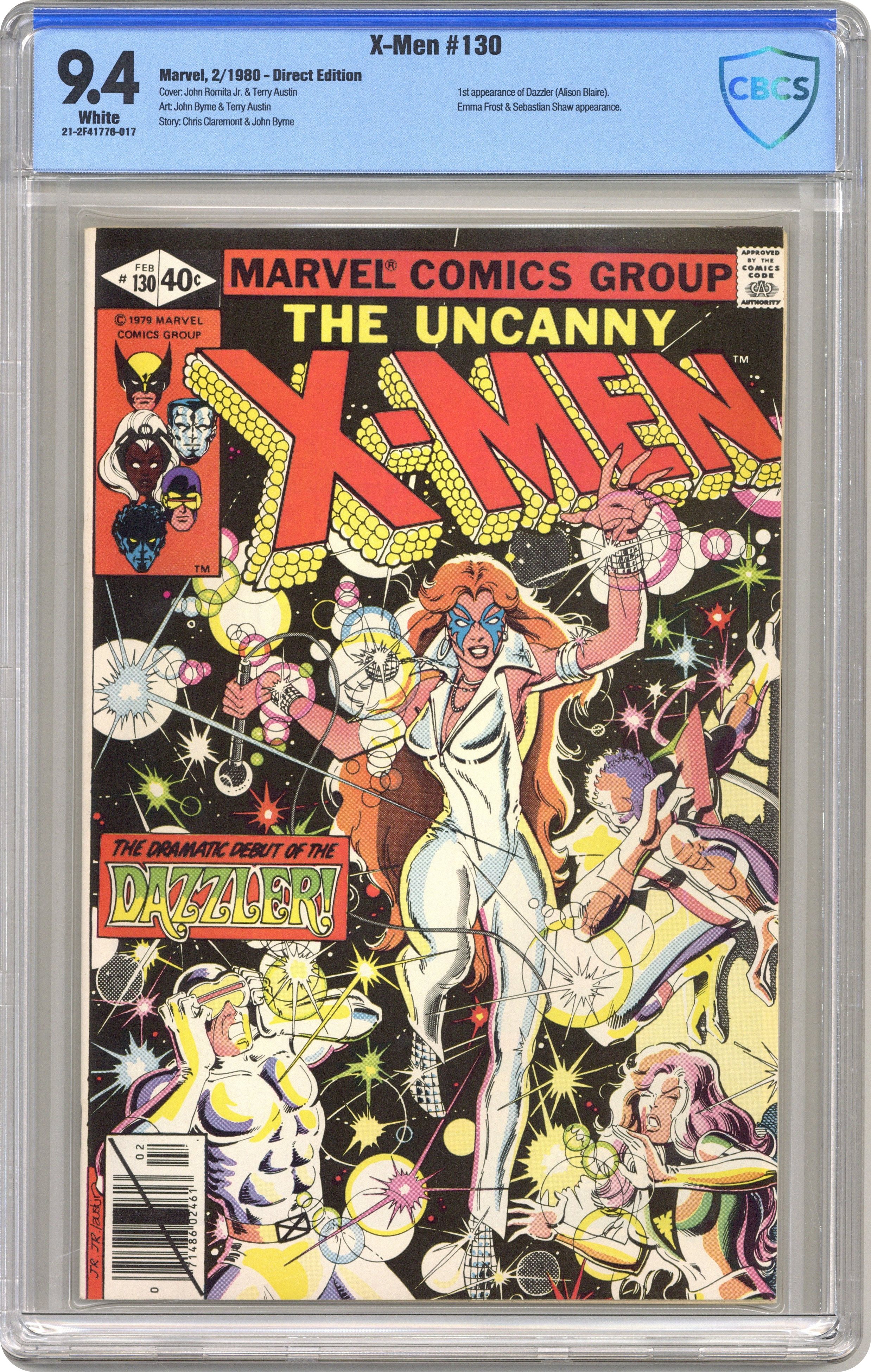 Ended Jan 5 2022 Winning Bid $281 Direct Edition. The Dark Phoenix Saga: Part 2 of 9 - "Dazzler!" Story by Chris Claremont and John Byrne. Art by John Byrne and Terry Austin. Wolverine, Colossus, and Storm have been taken captive by the sultry and dangerous White Queen, but for what purpose. Only the young new mutant Kitty Pryde can warn the rest of the team, but will she be in time to save her new friends? Meanwhile, Cyclops and Phoenix encounter another "new mutant" called Dazzler. Plus, Jason Wyngarde continues his mental seduction of Jean Grey. NOTE: 1st appearance of Dazzler. 36 pgs. Cover price $0.40. Grade: CBCS 9.4 explanation of grade Condition: Used (collectible)