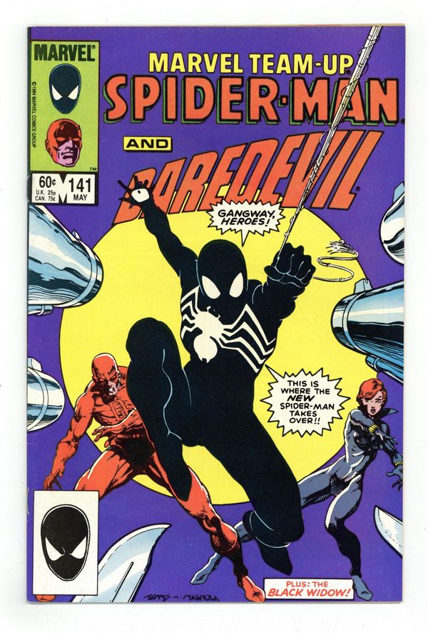 Direct Edition. "Blind Justice!" Part 2 of 2. Guest-starring Spider-Man, the Black Widow, and Daredevil. Plot by Tom DeFalco. Script by Jim Owsley. Art by Greg LaRocque (breakdowns) and Mike Esposito (finishes). Cover by Art Adams and Mike Mignola. Spider-Man is missing! What has happened to the spectacular one? Regardless, Daredevil and the Black Widow must keep working on the pawnbroker murder case in order to prevent an innocent man from going up the river! The Man Without Fear and Natasha just about have the case solved, when the web-slinger suddenly reappears...in a brand new costume! They'll be glad to have Spidey's help to finish this caper...or will they? Daredevil's deal with the Kingpin may not go over too well with your friendly neighborhood Spider-Man! Cameo appearances by the Kingpin, the Arranger, and Dr. Curt Connors. (Notes: Spider-Man's new costume debuted this month in Amazing Spider-Man 252, Spectacular Spider-Man 90, and this issue. The letters page includes a letter from Marvel creator Stan Lee.) 36 pages. Cover price $0.60. Grade: FN/VF 7.0 explanation of grade Condition: Used (collectible)