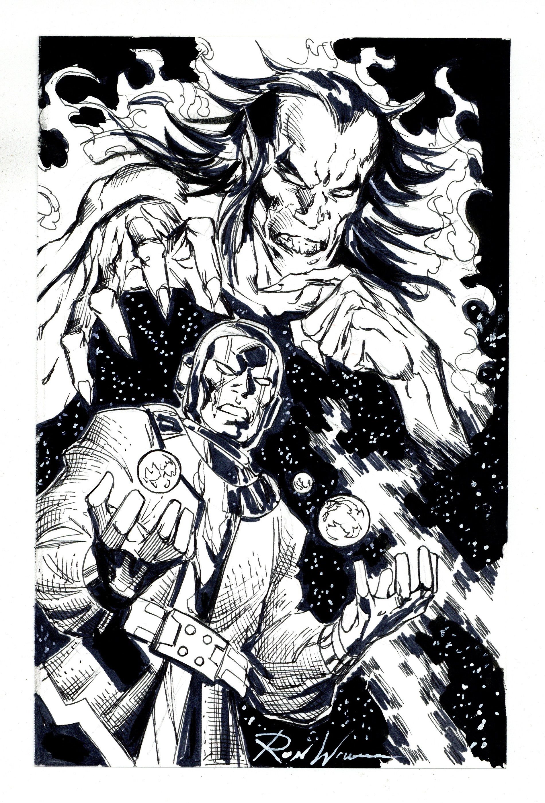 Kang and Mephisto Sketch by Ron Williams. Signed by the artist. Pencil and ink on heavy paper. 5 1/2" x 8 1/2", B&W.