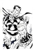 Mister Sinister, Blob, and Magneto Sketch by Ron Williams. Signed by the artist. Pencil and ink on heavy paper. 5 1/2" x 8 1/2", B&W.
