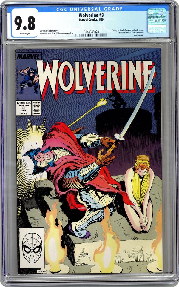 Direct Edition. Part 3 of 3 - "The Black Blade!" Written by Chris Claremont. Art by John Buscema and Al Williamson. Oh no, Wolverine is possessed by the Black Blade and is about to sacrifice Jessica Drew, unless McCabe and Silver Samurai can stop him. Kevin Nowlan art on back cover. 32 pages, FC Cover price $1.50. Grade: CGC 9.8 explanation of grade Condition: Used (collectible)