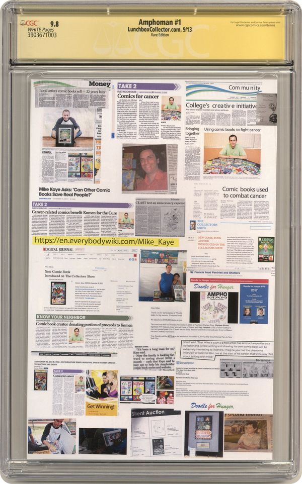 Published 2012 by LunchboxCollector.com.Amphoman (2012 LunchboxCollector) 1D CGC 9.8 SS Mike Kaye Kaye Black Border Variant