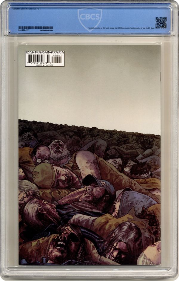 Ended Feb 14 2022 Winning Bid $36 Wraparound Cover by Charlie Adlard Something to Fear: Part 4 of 6 - (W) Robert Kirkman (A) Charlie Adlard, Cliff Rathburn 'SOMETHING TO FEAR' CONTINUES! This extra-sized chapter contains one of the darkest moments in Rick Grimes' life, and one of the most violent and brutal things to happen within the pages of this series. 100 issues later, this series remains just as relentless as the debut issue. Do not miss the monumental 100th issue of THE WALKING DEAD! NOTE: 1st Appearance of of Negan & Lucille. Cover price $3.99. Grade: CBCS 9.8 explanation of grade Condition: Used (collectible)