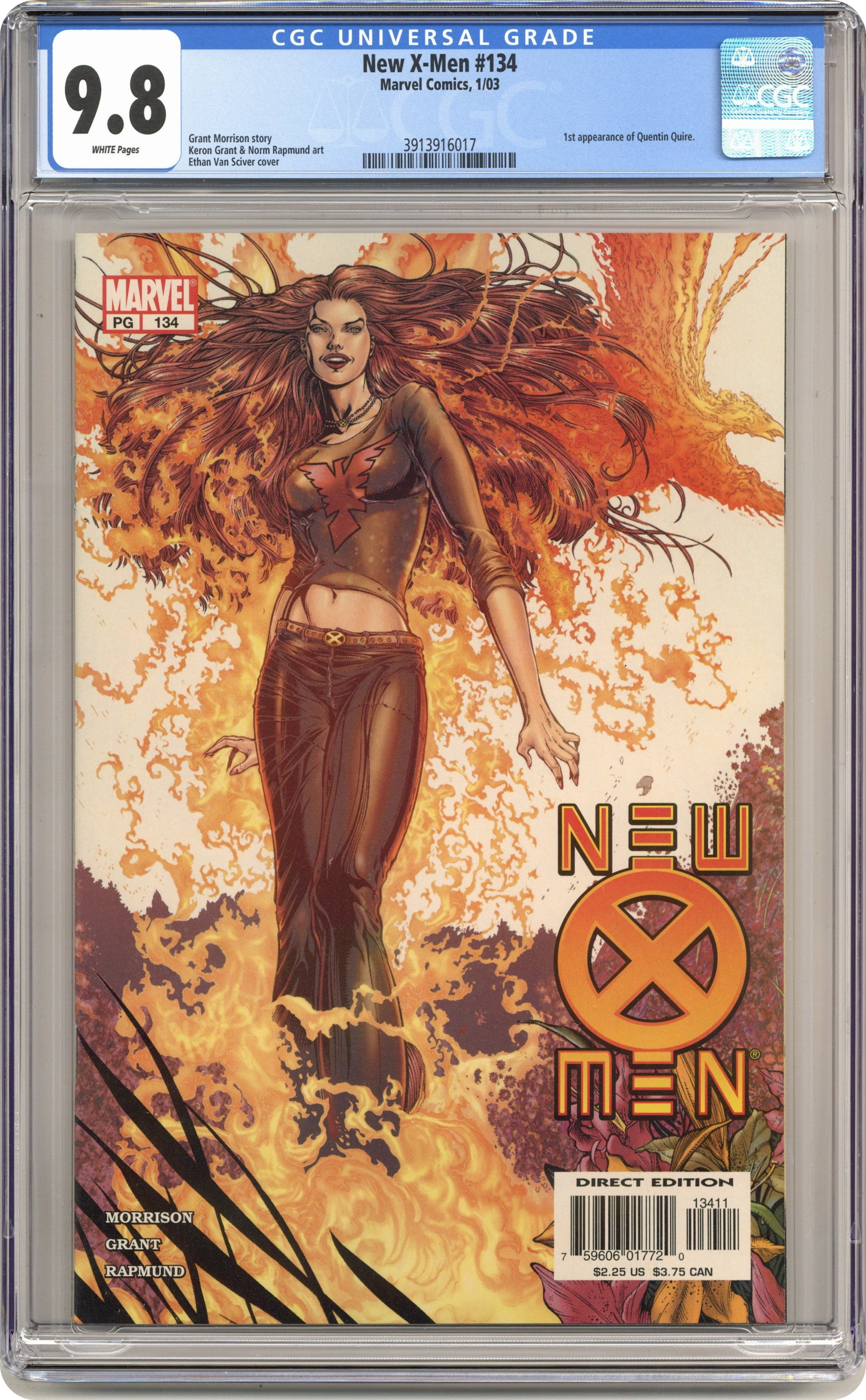 Ended Mar 6 2024 Winning Bid $37 Grant Morrison writer. Cover by Ethan Van Sciver. Art by Keron Grant & Norm Rapmund. In a world without Magneto, will the biggest threat to the X-Men come from... within? Find out when Xavier's dream faces its most unexpected and devastating challenge in the form of Kid Omega! 32 PGS. WITH ADS/FC/MARVEL PG......2.25 Cover price $2.25. Grade: CGC 9.8 explanation of grade Condition: Used (collectible)