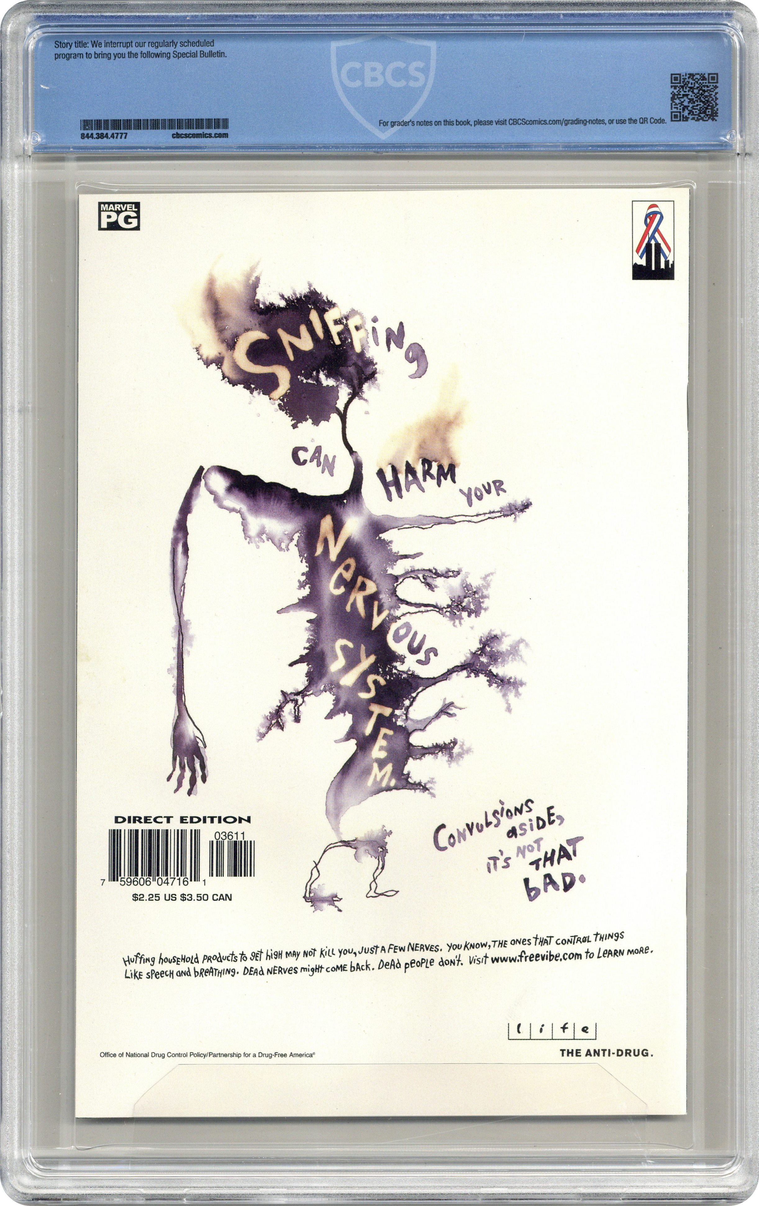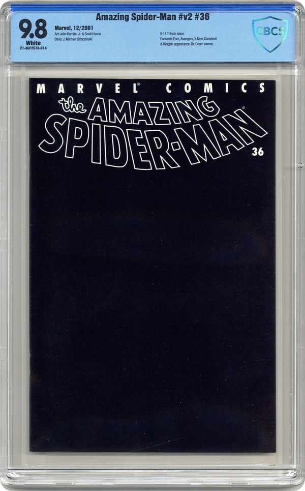Direct Edition. Black Cover Sept. 11th issue. Michael Straczynski/John Romita Jr./Scott Hanna. (Marvel PG) 2.25 36 pgs. Cover price $2.25. Grade: CBCS 9.8 explanation of grade Condition: Used (collectible)