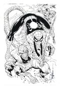 Spider-Man vs. Lizard and Shocker Sketch by Ron Wilson. Signed by the artist. Pencil and ink on heavy stock. 8 1/2" x 5 1/2", B&W.