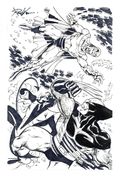 Wolverine and Nightcrawler vs. Magneto Sketch by Ron Wilson. Signed by the artist. Pencil and ink on heavy stock. 8 1/2" x 5 1/2", B&W.