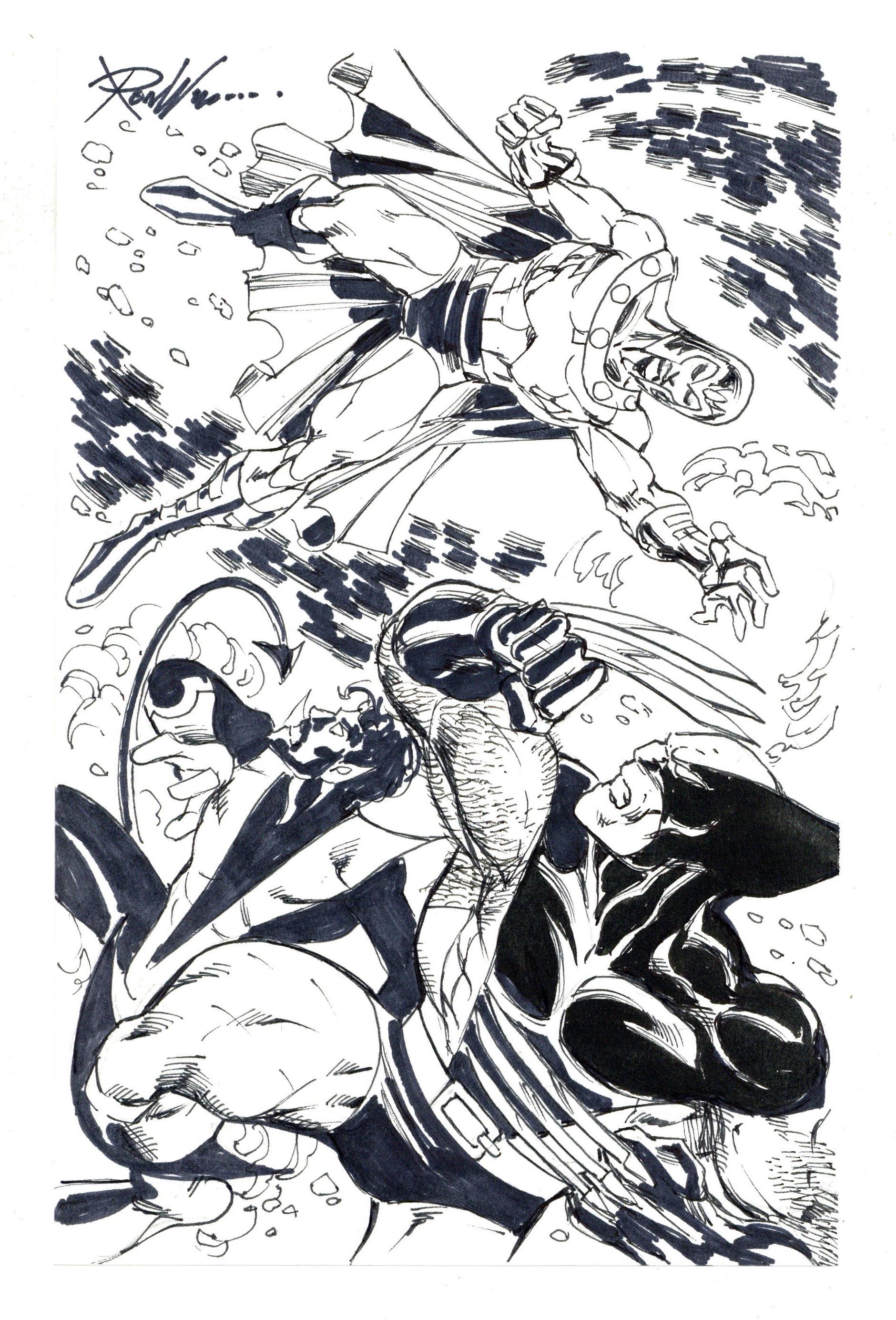 Wolverine and Nightcrawler vs. Magneto Sketch by Ron Wilson