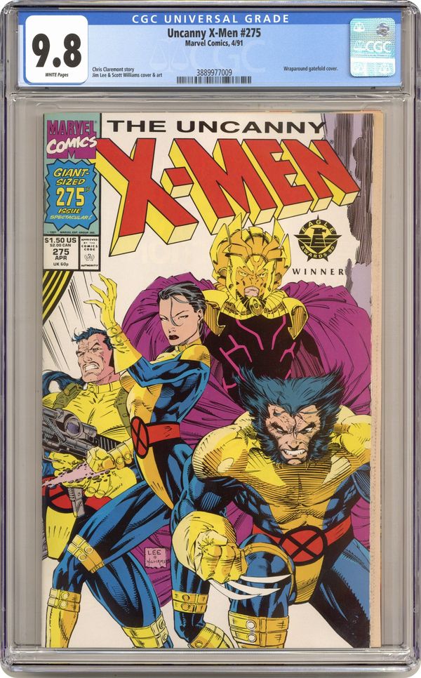 First Printing. Direct Edition. 52-page Special Giant-Sized Issue - "The Path Not Taken!" Part 2 of 4. Guest-starring the Starjammers, Nick Fury, and Ka-Zar. Story by Chris Claremont. Art and cover by Jim Lee and Scott Williams. The X-Men battle Deathbird and Shi'ar Imperial Guard for the fate of the universe. Plus, the students of Xavier's Institute are reunited with someone they never thought they'd see again. Meanwhile back on Earth, Nick Fury, Ka-Zar, Rogue, and Magneto mount a desperate attack to save mankind from the mad machinations of Zaladane! ***death of Zaladane Tri-fold cover by Lee/Williams. 54 pgs. Cover price $1.50. Grade: CGC 9.8 explanation of grade Condition: Used (collectible)