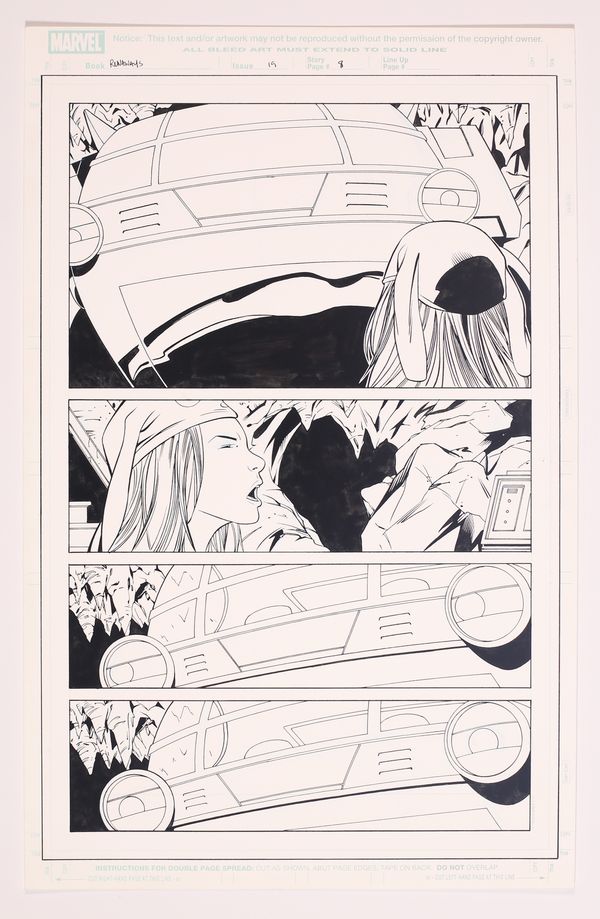 Original Art for Runaways (2005 2nd Series Marvel) Issue 19, Page 8 by Mike Norton and Craig Yueng. Blue line pencil and ink on Marvel Bristol board. 11" x 17", B&W.