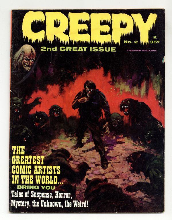 Ended Aug 22 2023 Winning Bid $23 Issue #2. April 1965. Stories in this issue include: Fun and Games! by Archie Goodwin and Joe Orlando; Spawn of the Cat People by Archie Goodwin and Reed Crandall; Wardrobe of Monsters! by Otto Binder, Gray Morrow, and Angelo Torres; Welcome Stranger by Archie Goodwin and Al Williamson; I, Robot by Otto Binder and Joe Orlando; and Ogre's Castle by Archie Goodwin and Angelo Torres. Cover art by Frank Frazetta. 8.25" x 10.75". 48 pages. Black and white. Cover price $0.35. Grade: GD 2.0 explanation of grade Condition: Used (collectible)