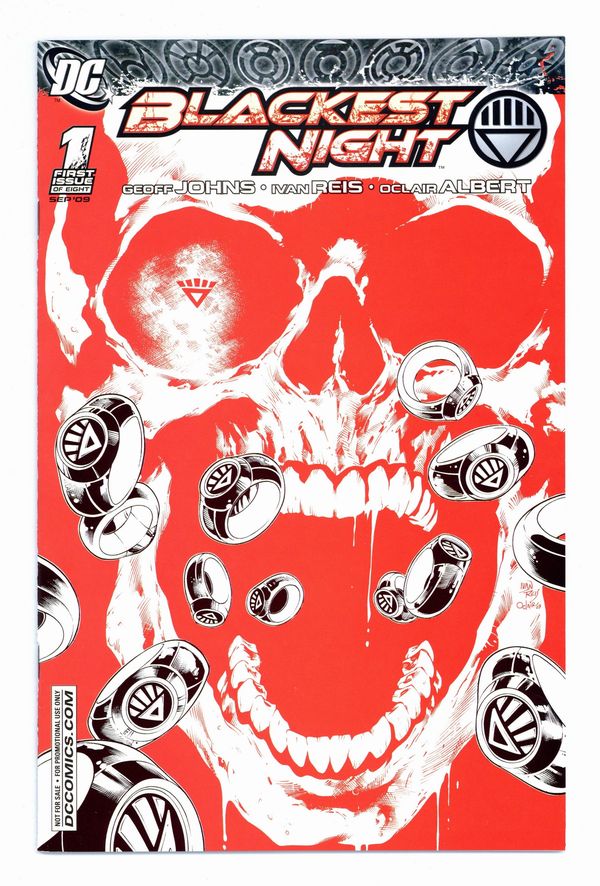 Diamond Retailer Summit Variant by Ivan Reis and Oclair Albert. Written by Geoff Johns Art and cover by Ivan Reis and Oclair Albert. Geoff Johns and Ivan Reis raise the dead in the most anticipated comics story of the year! Throughout the decades, death has plagued the DC Universe and taken the lives of heroes and villains alike. But to what end? As the War of Light rages on, the prophecy of the Blackest Night descends upon us, with Hal Jordan and the Green Lantern Corps at the center of it all. Don't miss this 8-issue epic taking the DCU beyond the grave! 48 pages, full color. No cover price. Grade: VF/NM 9.0 explanation of grade Condition: Used (collectible)