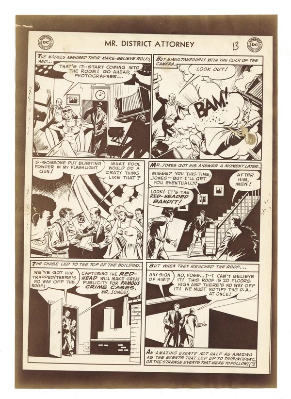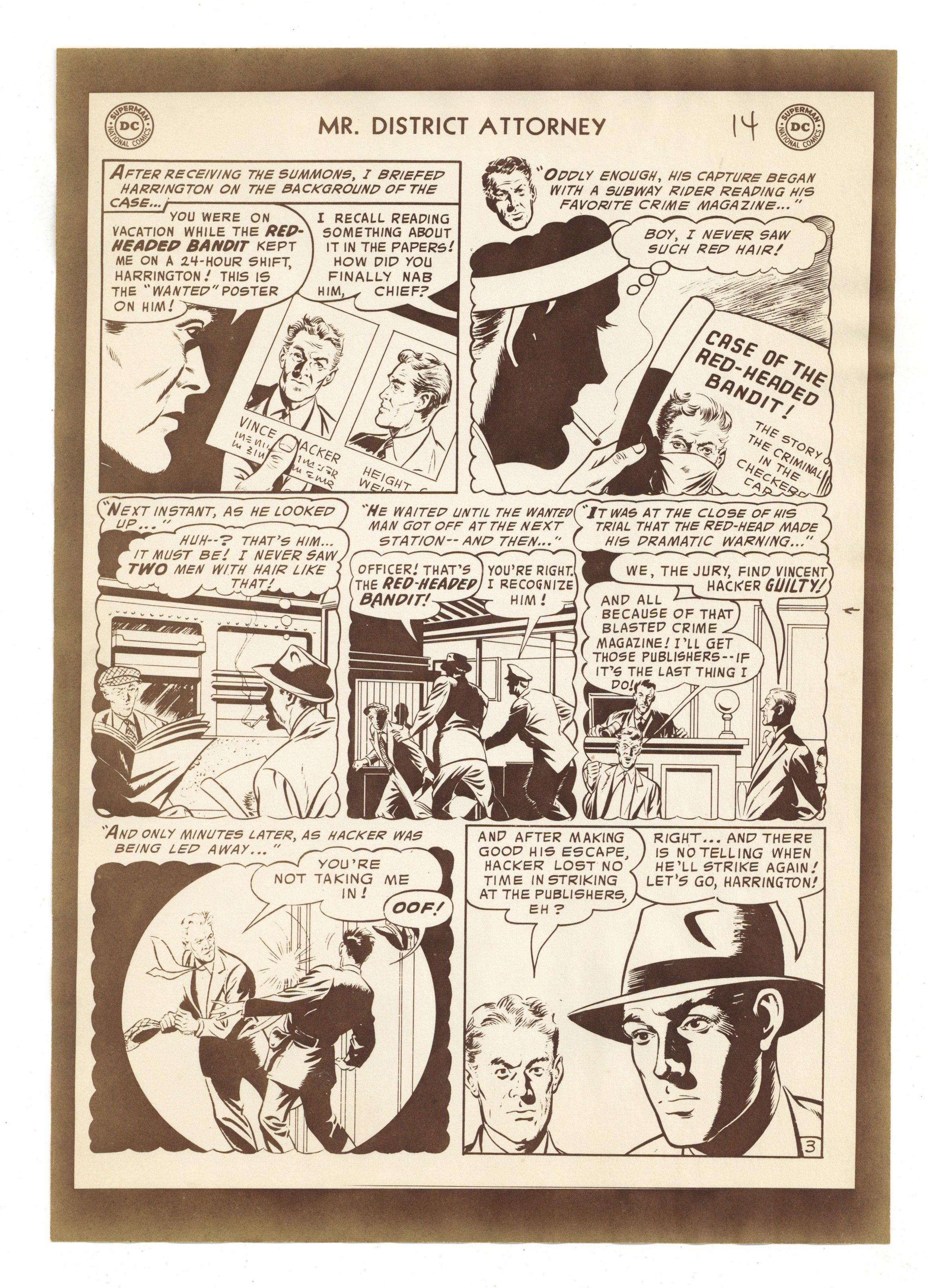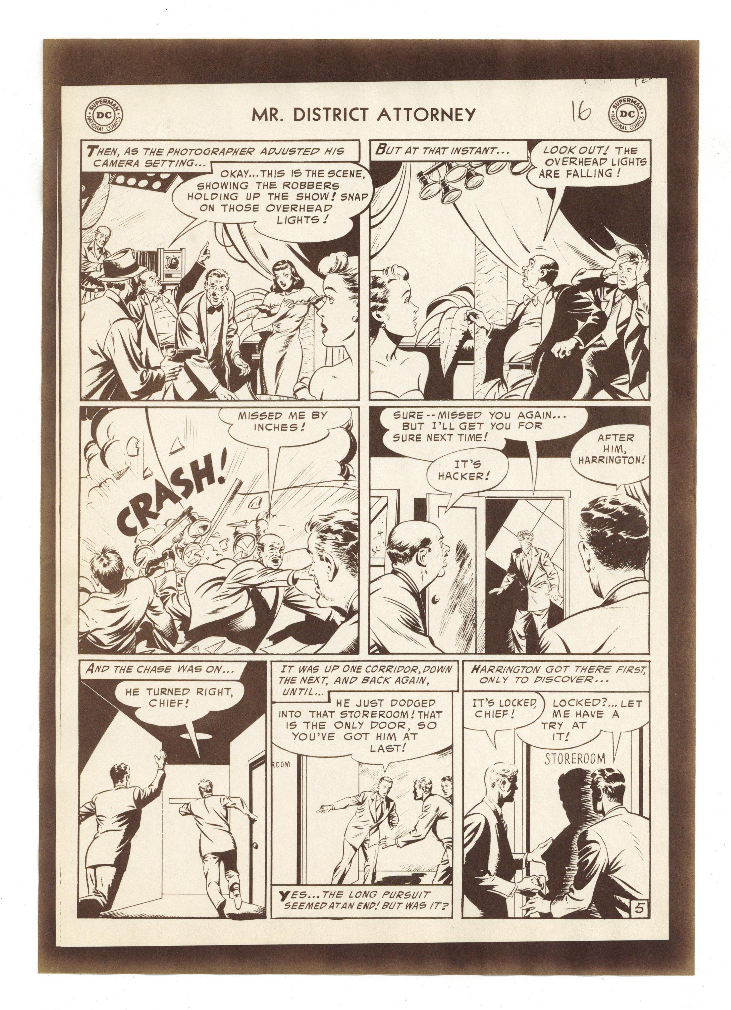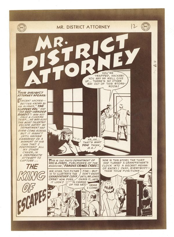 Production Proof for "The King of Escapes" from Mr. District Attorney (1948) #49. Proofs for the eight page story on paper. 7 1/8" x 10", B&W.