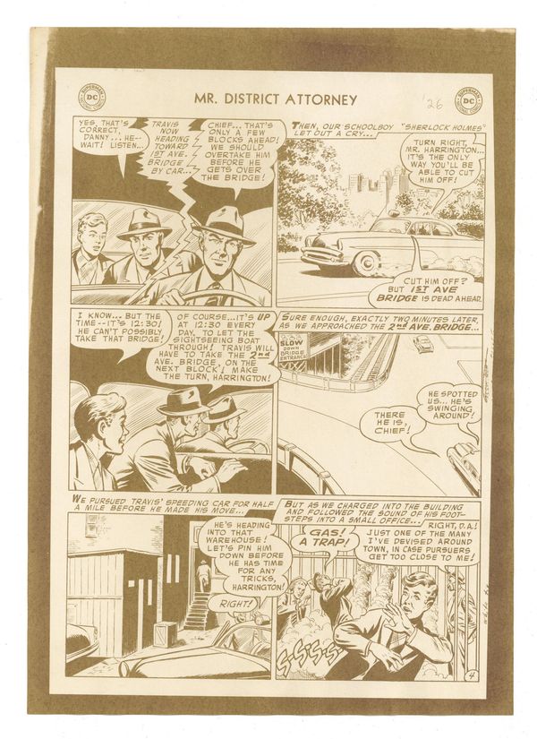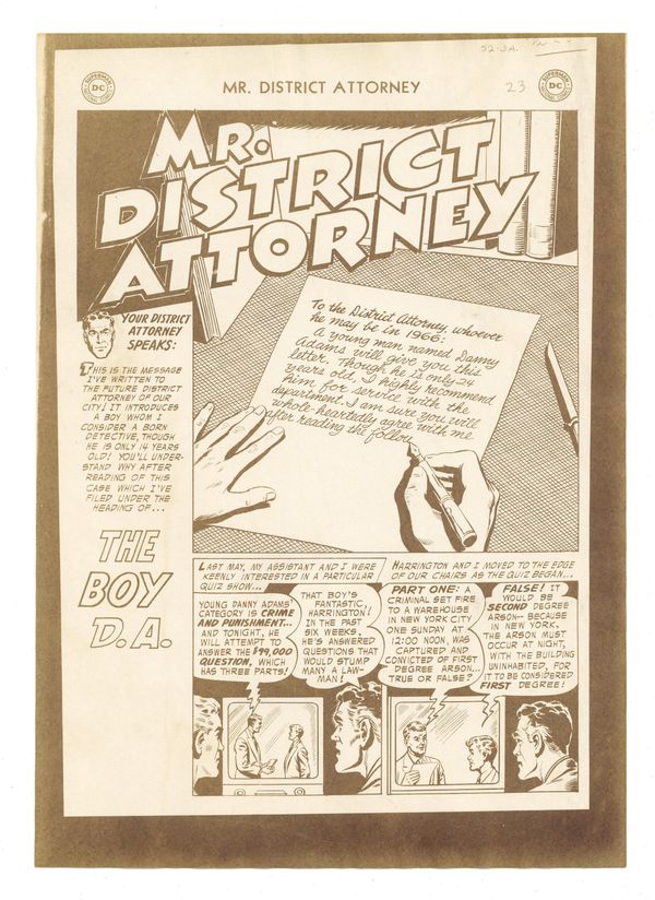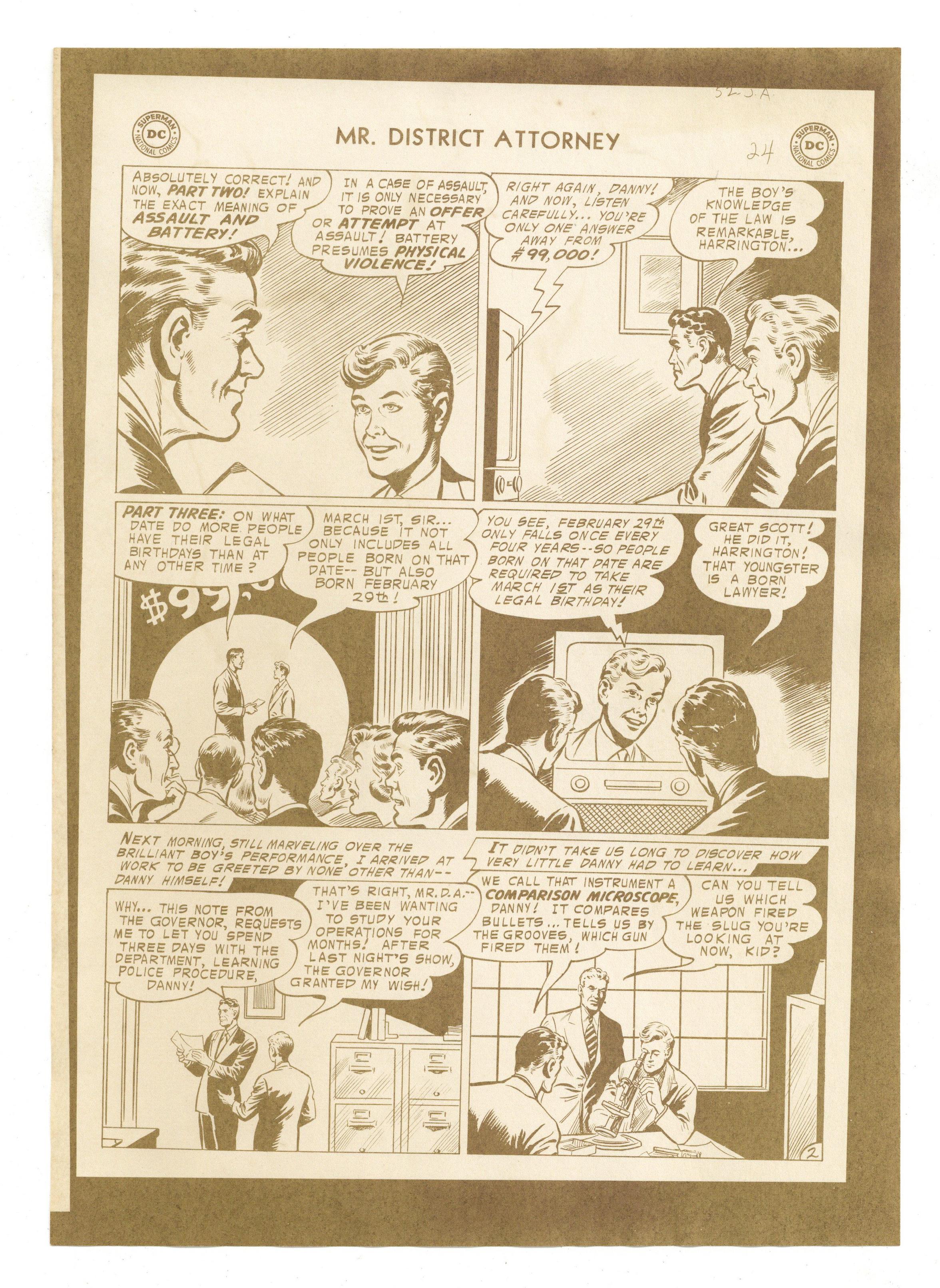 Production Proof for "The Boy D.A." from Mr. District Attorney (1948) #52. Proofs for the eight page story on paper. 7 1/8" x 10", B&W.
