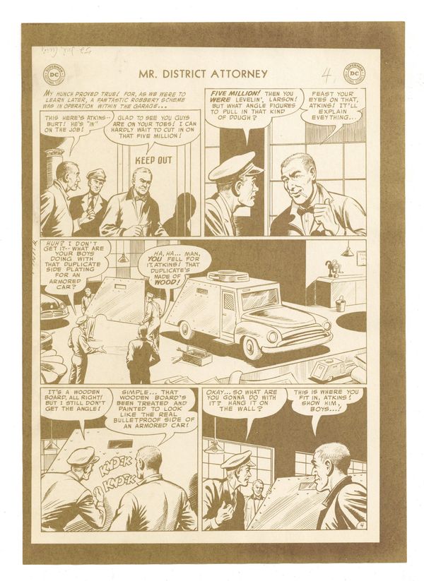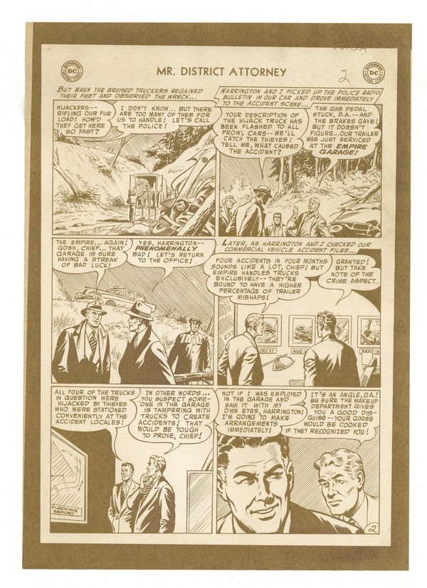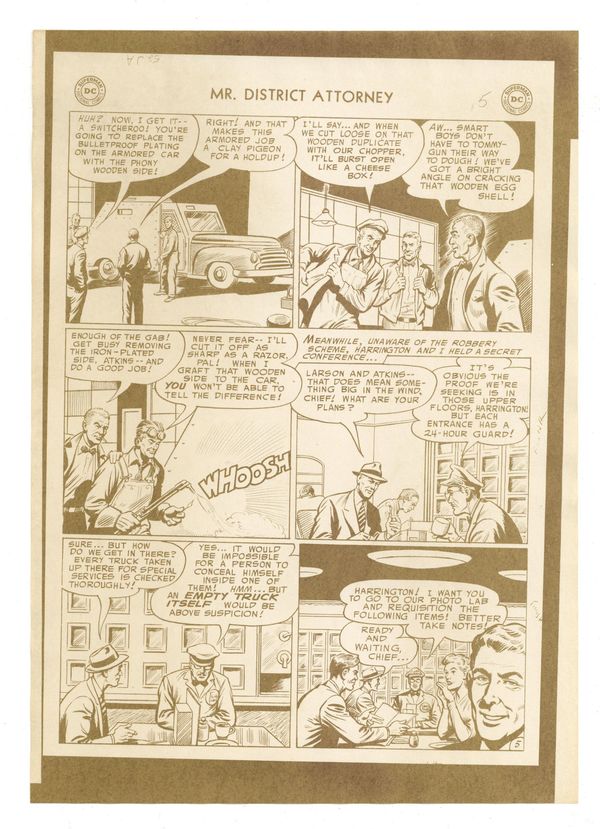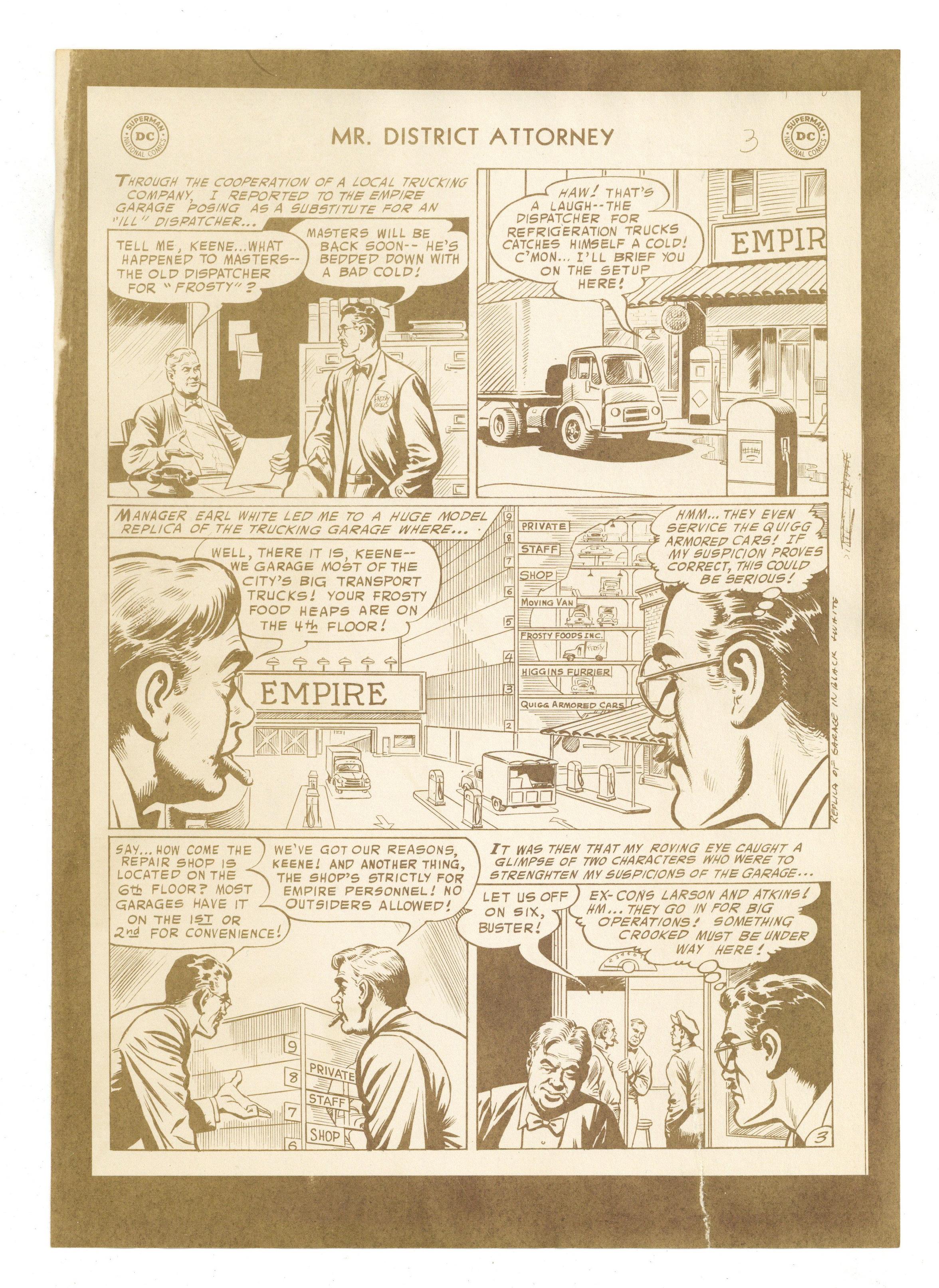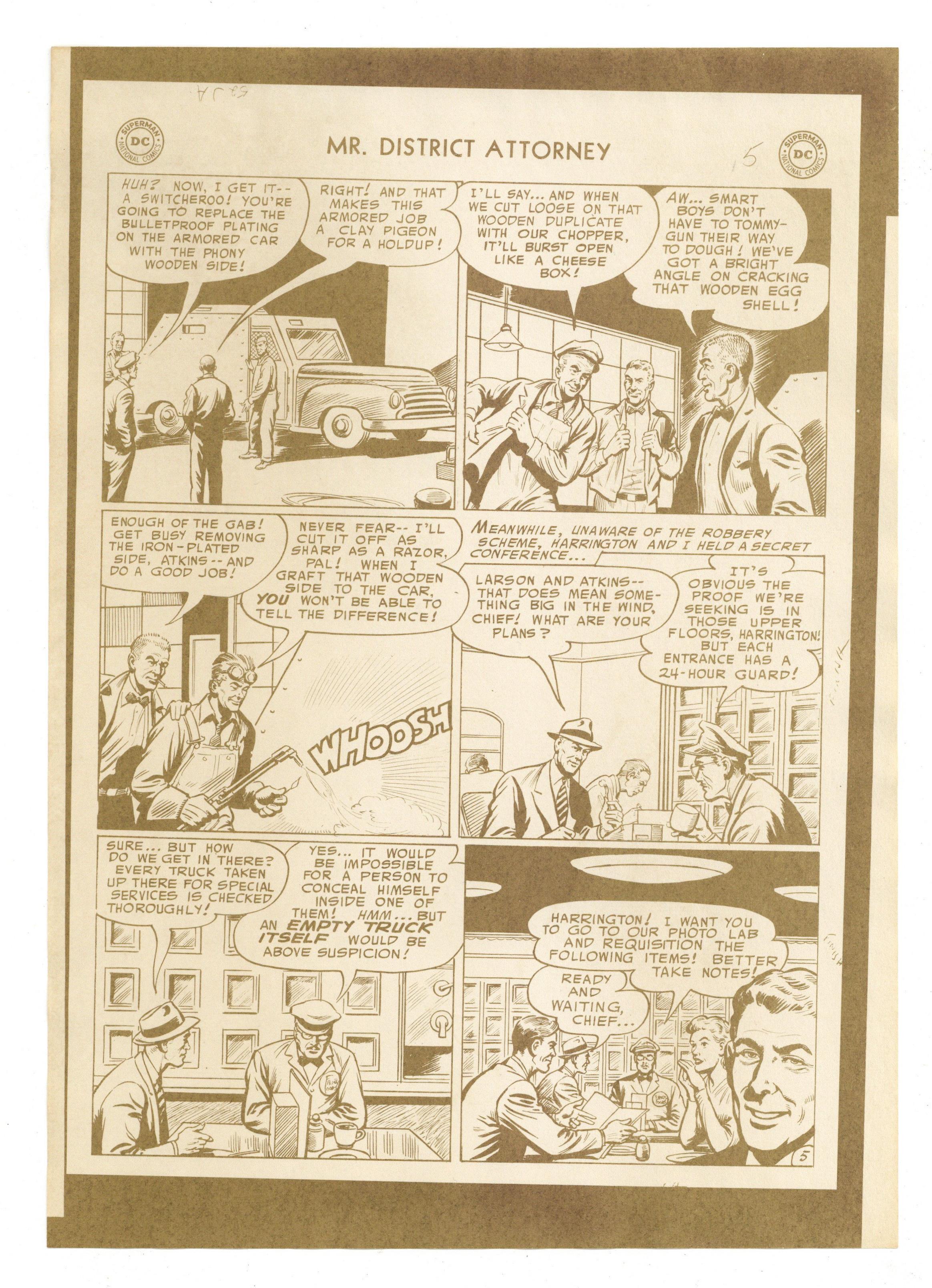 Production Proof for "The Crooked Wheels of Fortune" from Mr. District Attorney (1948) #52. Proofs for the eight page story on paper. 7 1/8" x 10", B&W.