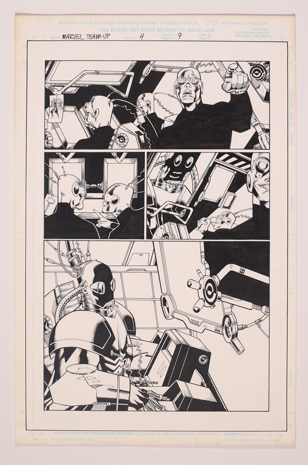 Original Art for Marvel Team-Up (1997) Issue 4, Page 9 by Josh Hood and Andrew Pepoy. Blue line pencil and ink on Marvel Comics Bristol board. 11 1/4" x 17 1/4", B&W.