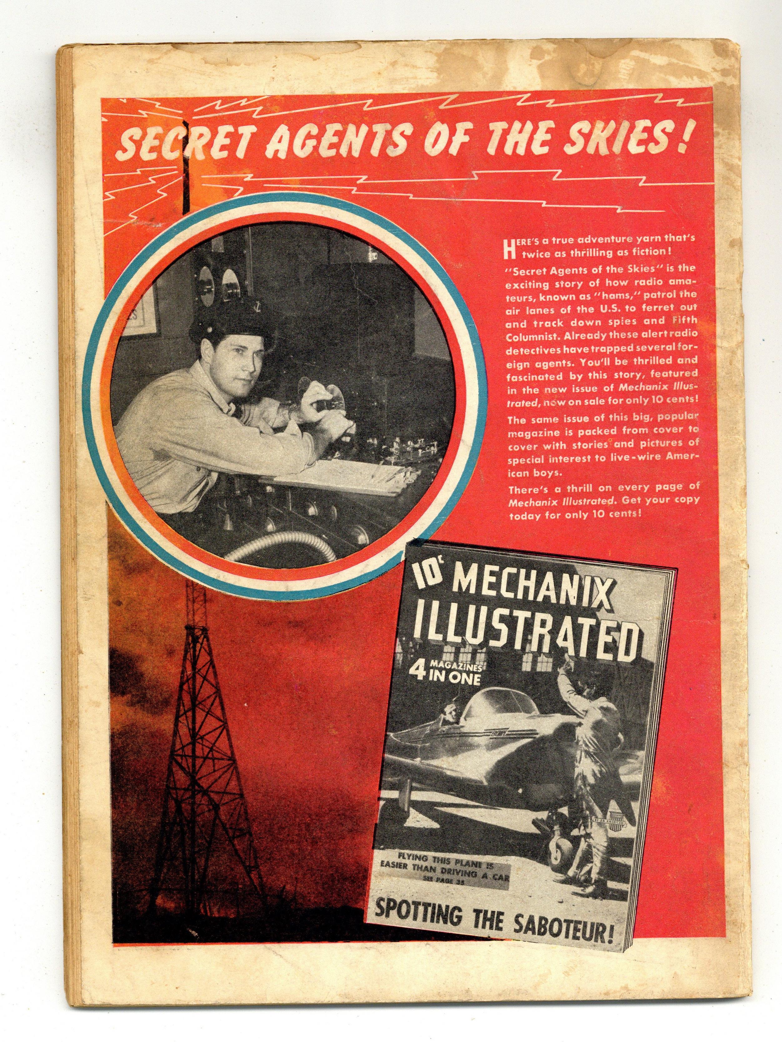 Ended Jul 30 2022 Winning Bid $305 Cover by C. C. Beck. "The Vengeful Four," art by C. C. Beck; Three young men from different areas of the country (Texas, the Ozarks, and Brooklyn), all named Billy Batson, were reading Captain Marvels comic book adventures and happened to wonder if saying "Shazam" would work for them as well; As it happened, Tall Billy, Hill Billy, and Fat Billy were captured, along with the real Billy, by Sivana and his gang. "The Railroad Wreckers" starring Golden Arrow. "Crew of Criminals" starring Lance O'Casey. "Blitzing the Blitzys" starring Spy Smasher, art by Charles Sultan: vs. Otto Bund and Blitzys. "Death to the Traitor" text story, art by Carl Formes (as LaRac Semrof). "The Vital Defense Plans" starring Dan Dare. "Dr. Voodoo's Revenge," art by Mac Raboy; Hal and Nero escape from the giants and begin a long climb up a cliff face. "The Coming of Half-Man" starring Ibis the Invincible; vs. Half-Man. 68 Pages, Full Color. Cover price $0.10. Grade: GD/VG 3.0 explanation of grade Condition: Used (collectible)