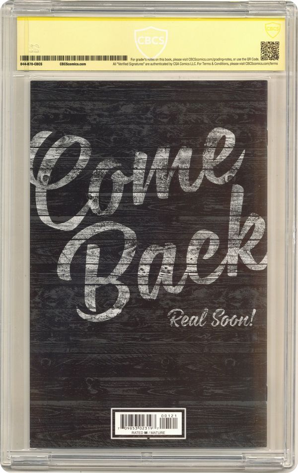 Ended Oct 19 2023 Winning Bid $56 Retailer Appreciation edition. Written by Donny Cates. Art and Cover by Lisandro Estherren and Dee Cunniffe. SERIES PREMIERE The Bowmans are VAMPIRES who have quietly run the local barbecue joint in their small town for years, living off cow's blood. Their peaceful coexistence ends as generations of hate, fear, and bad blood bubble to the surface--making it impossible to separate man from monster! Critically acclaimed writer DONNY CATES (GOD COUNTRY) and artist LISANDRO ESTHERREN serve up the tale of a DIFFERENT kind of family just trying to get by, deep in the heart of Texas. 28 pages, full color. Rated M Cover price $3.99. Grade: CBCS 9.8 explanation of grade Condition: Used (collectible)