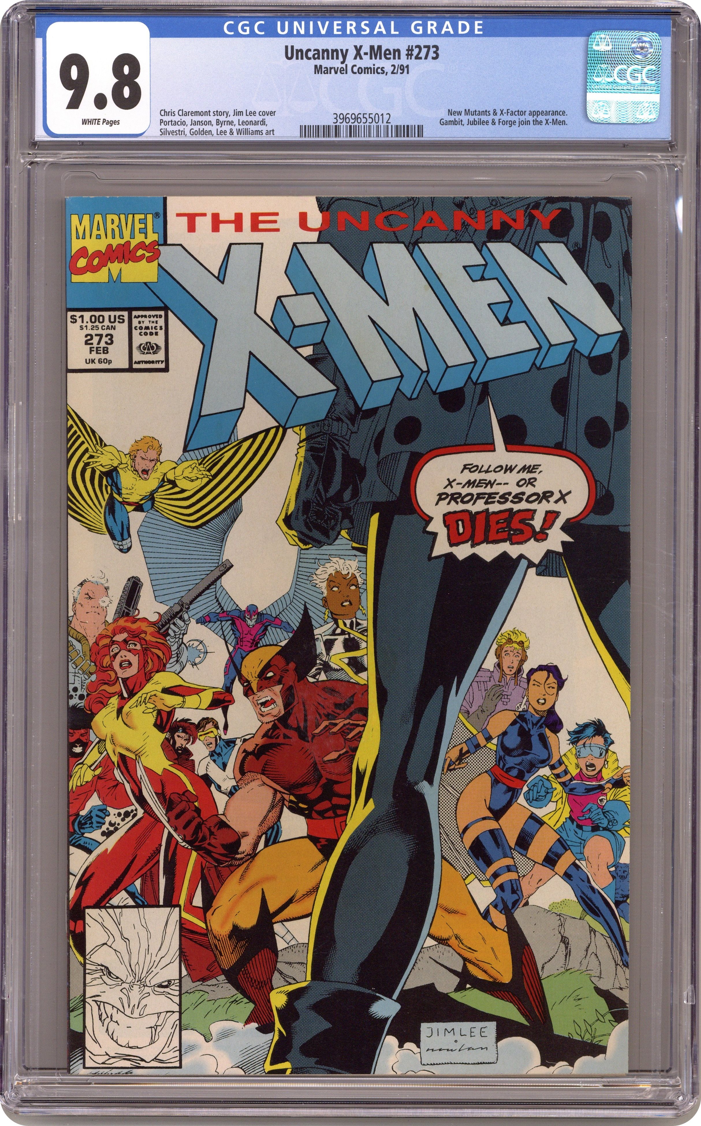 "Whose House is this Anyway?!" Guest-starring X-Factor and the New Mutants. Story by Chris Claremont. Cover by Jim Lee and Scott Williams. The halls of Xavier's Institute are becoming very crowed. This very special issue, featuring the talents of an army of the industry's best, answers the question "what happens when there too many mutants?" Plus, Lila Cheney arrives with dire news about Professor X! Featuring art by Whilce Portacio, Klaus Janson, John Byrne, Rick Leonardi, Marc Silvestri, Michael Golden, Larry Stroman, Jim Lee, and Scott Williams. 36 pgs. Cover price $1.00. Grade: CGC 9.8 explanation of grade Condition: Used (collectible)