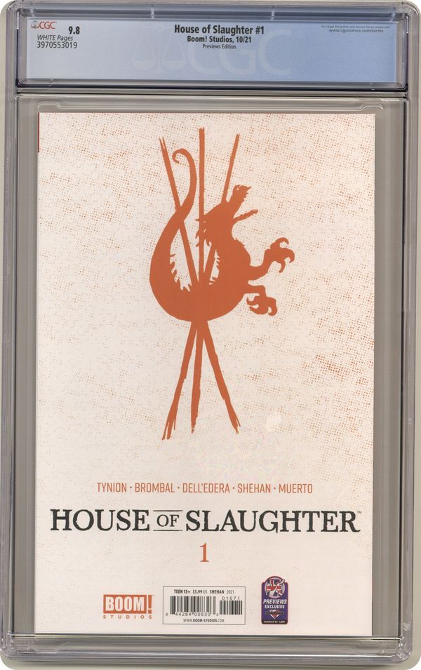 Published Oct 2021 by Boom Studios.House of Slaughter (2021 Boom) 1PREVIEWS CGC 9.8 Shehan Previews Variant