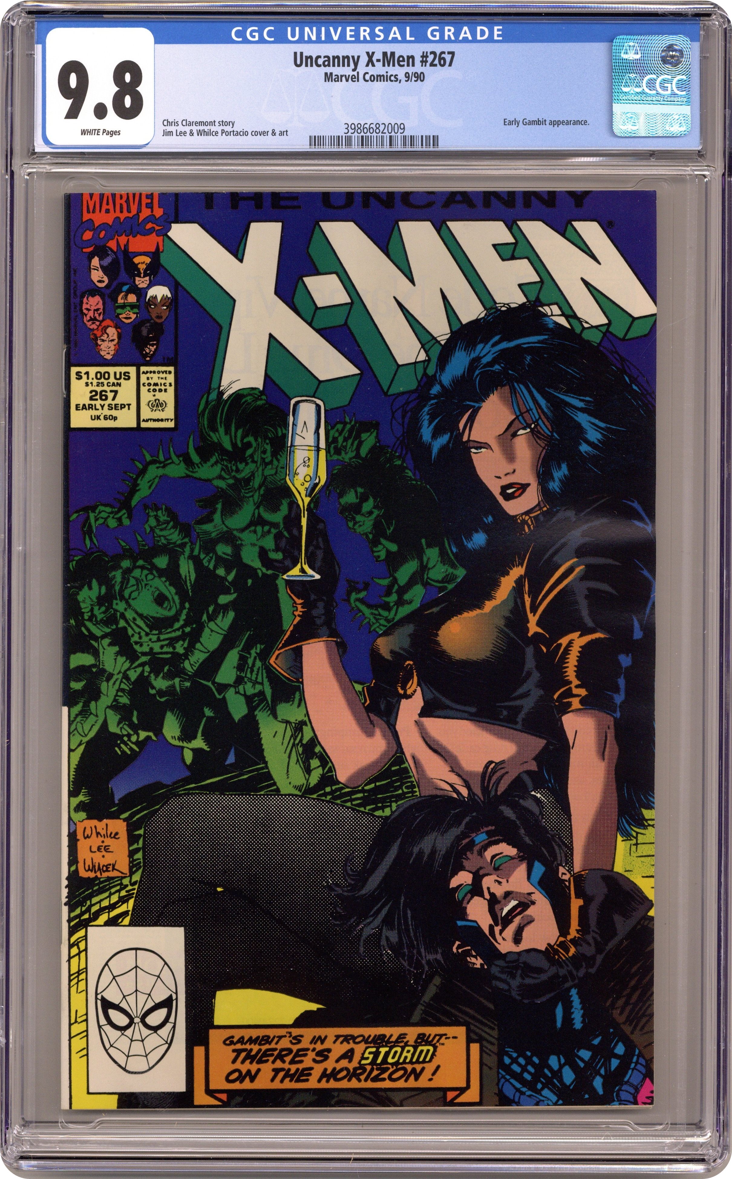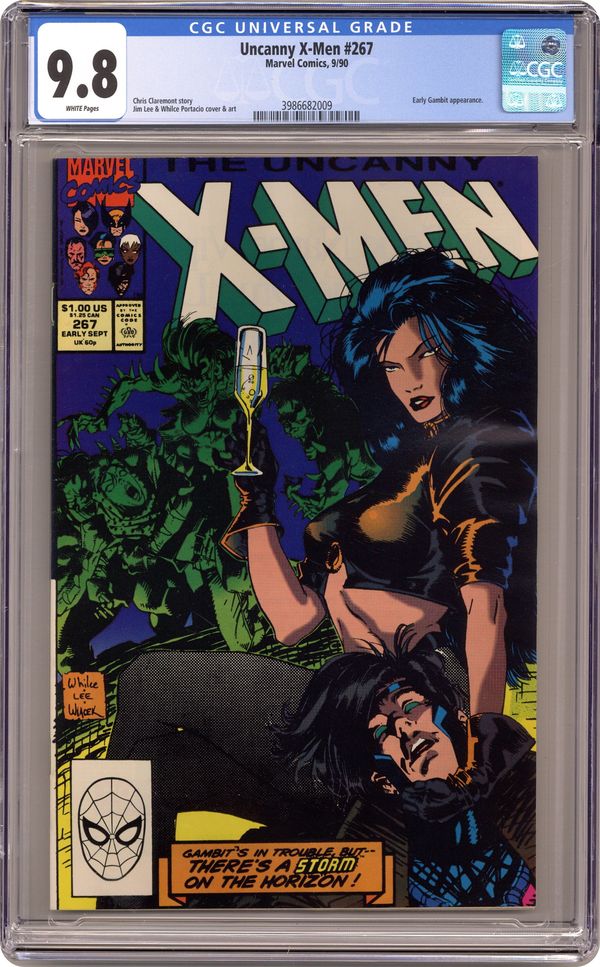 "Nanny!" Part 3 of 3. Story by Chris Claremont. Art by Whilce Portacio, Jim Lee, and Scott Williams. Cover by Whilce Portacio, Jim Lee, and Bob Wiacek. Not only do Storm and Gambit have to deal with the murderous Hounds, but now Nanny and the Orphan Maker decide to get involved as well. Can these world class thieves manage to escape this two-pronged attack? 36 pgs. Cover price $1.00. Grade: CGC 9.8 explanation of grade Condition: Used (collectible)