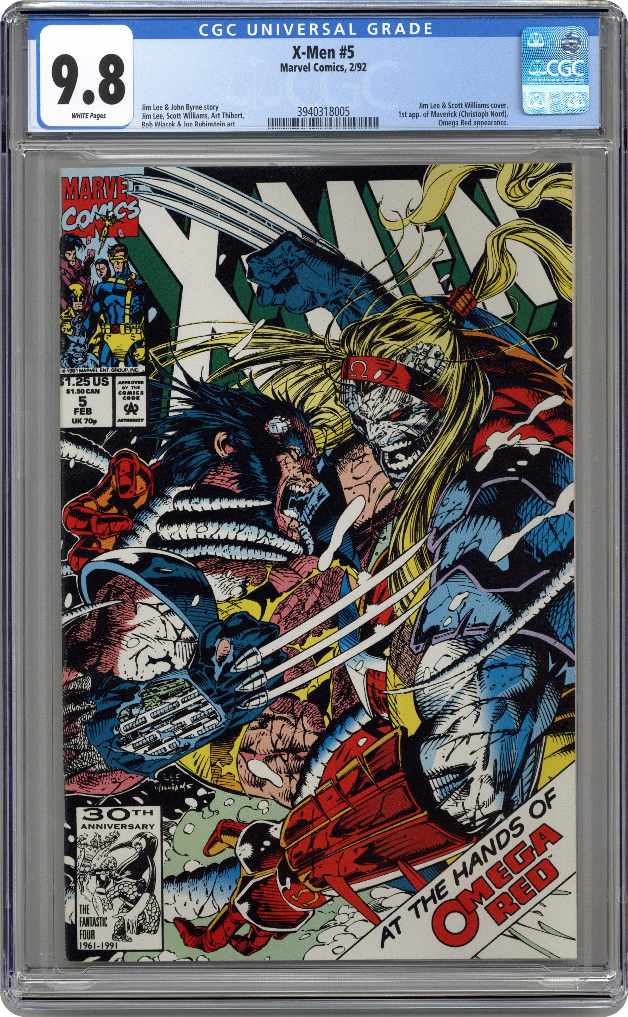 Direct Edition. Cover pencils by Jim Lee, inks by Scott Williams. Blowback, script by Jim Lee (Plot) and John Byrne, pencils by Jim Lee, inks by Scott Williams, Art Thibert, Bob Wiacek, and Joe Rubinstein; Wolverine is captured by Omega Red and Fenris so they can probe his memories to find a Carbonadium Synthesizer that has been lost for 30 years; Wolvie escapes with the help of an old friend; The X-Men come after him as well; story takes place before and leads into Uncanny X-Men #281. 36 pgs. $1.25. Cover price $1.25. Grade: CGC 9.8 explanation of grade Condition: Used (collectible)