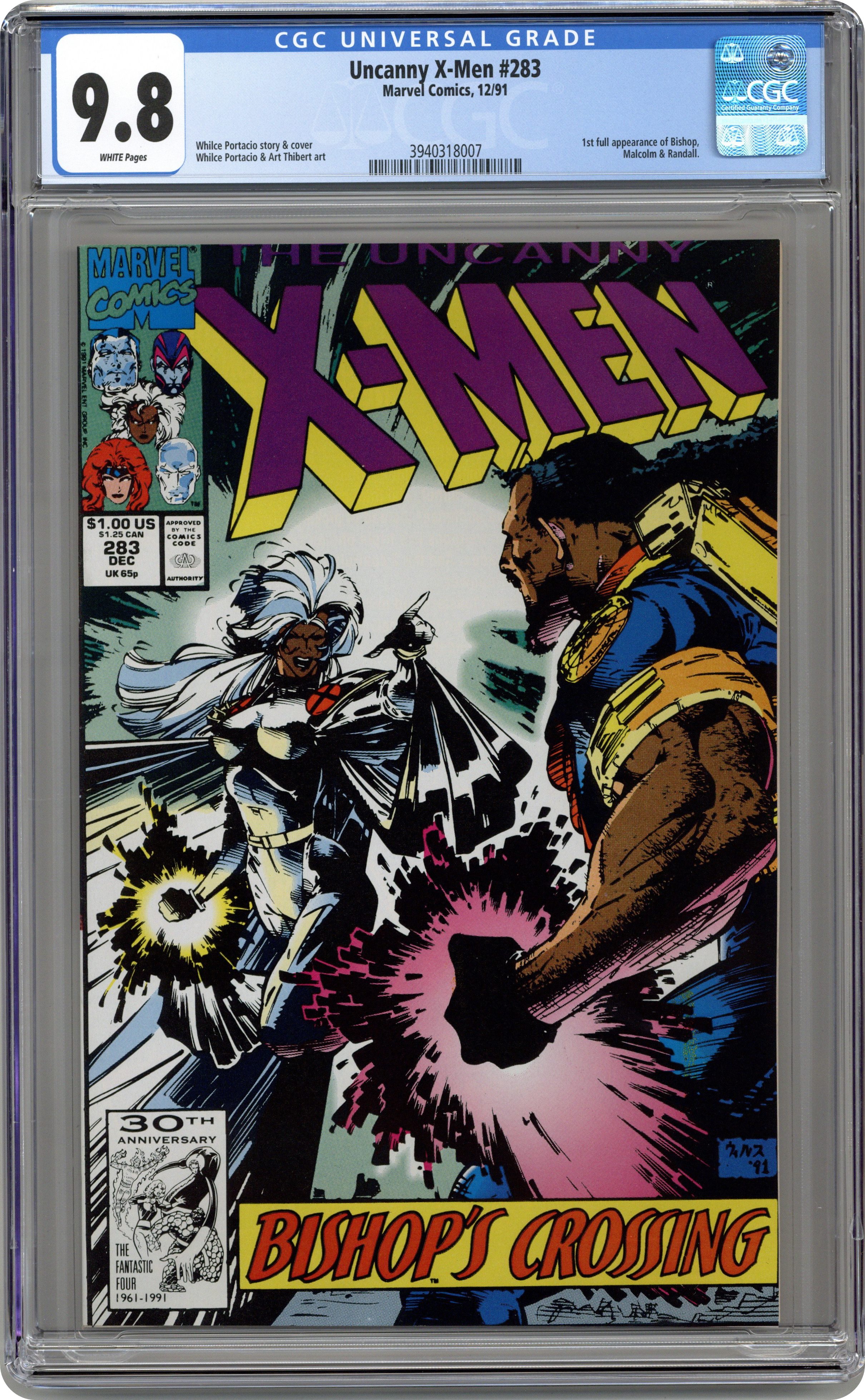 1st full appearance of Bishop. "Bishop's Crossing!" Story by Whilce Portacio and John Byrne. Art by Whilce Portacio and Art Thibert. His name is Bishop, and he's arrived here from the future to set the wrong things right. Even if he has to go through the X-Men to do it. Plus, whatever happened to Jean Grey and Emma Frost? 36 pgs. Cover price $1.00. Grade: CGC 9.8 explanation of grade Condition: Used (collectible)