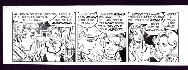 Original art for the 2/20/1985 entry of Winnie Winkle by Frank Bolle and Henry Raduta. Signed by the artist. Pencil and ink on Bristol board. 5 1/2" x 16 1/2", B&W.