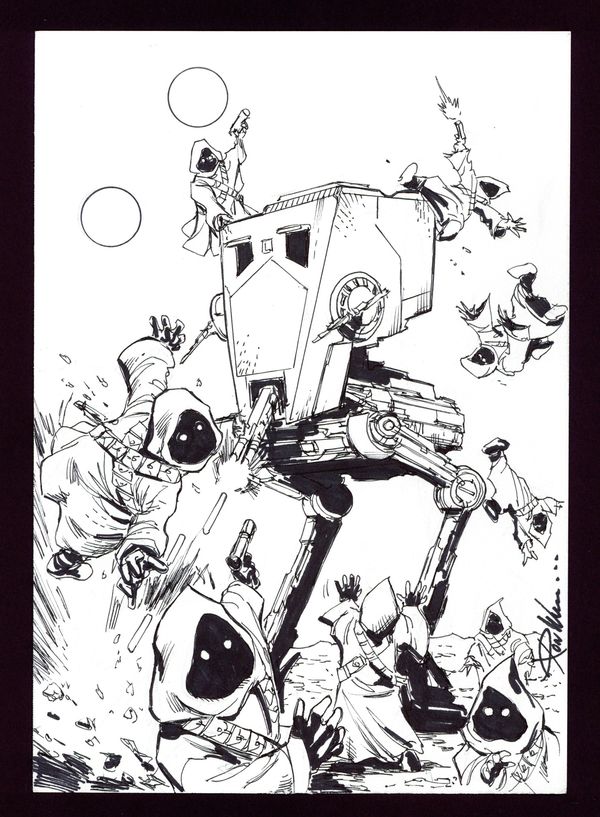 AT-ST vs. Jawas Sketch by Ron Williams