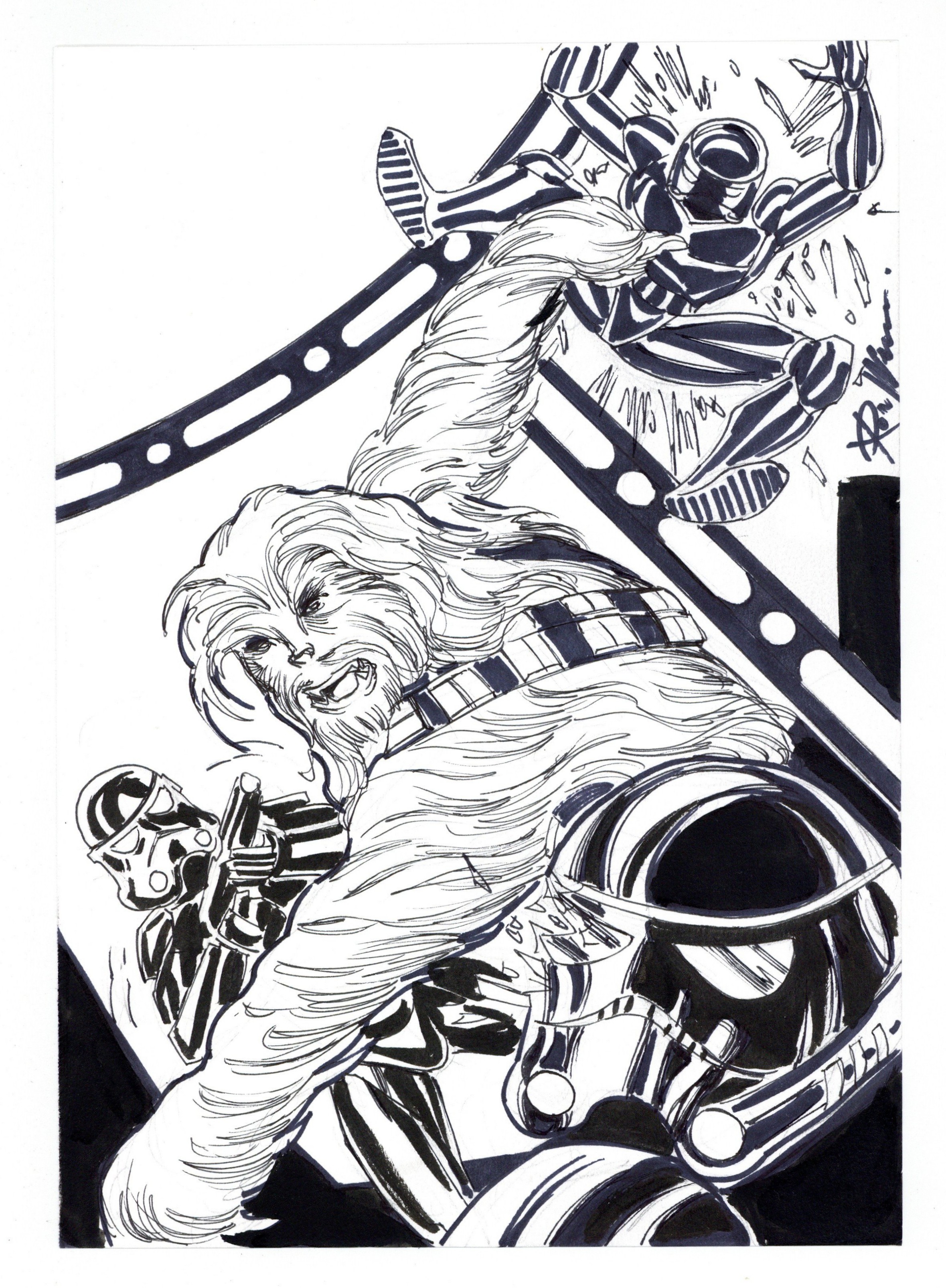 Chewbacca vs. Stormtroopers Sketch by Ron Williams