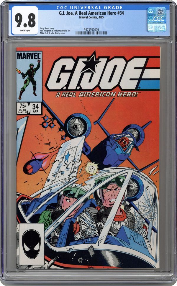 1st printing - "Shakedown!" Written by Larry Hama. Art by Rod Whigham and Andy Mushynsky. Cover by Mike Zeck. It's a duel in the sky, as Ace and Wild Weasel go head-to-head! 32 pages, FC. Cover price $0.75. Grade: CGC 9.8 explanation of grade Condition: Used (collectible)