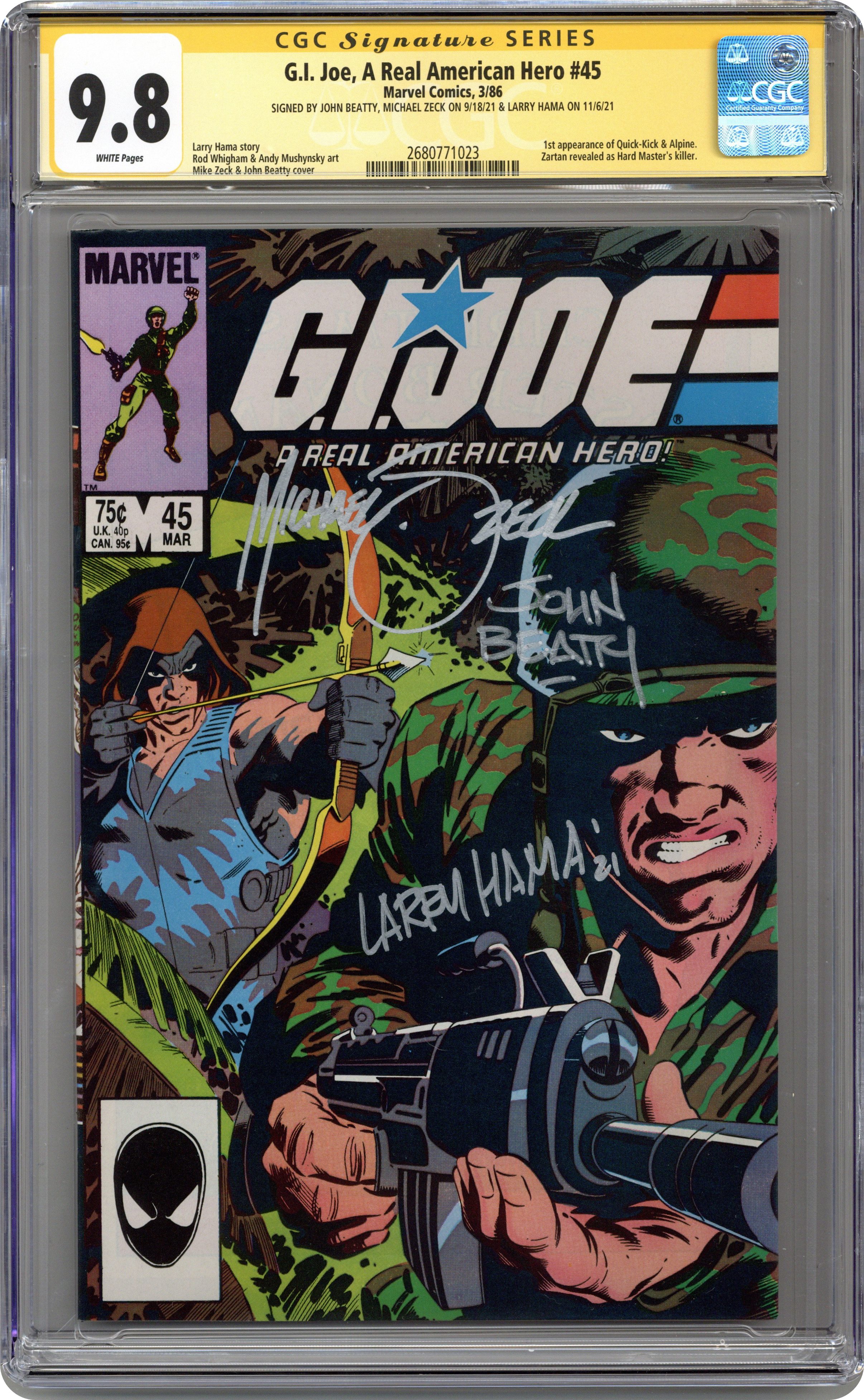 - Signed by John Beatty, Michael Zeck on 9/18/21 & Larry Hama on 11/6/21.