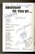 Signed by Paul Levitz, Dale Messick, Len Wein, Mike Gold, Mike Grell, Joe Orlando, Al Milgrom, Don McGregor, Mike Vosburg, Neal Adams, Mike Nasser, Stan Lee, Jenette Kahn, Don Glut, Paul Kupperberg, Tim Conrad, Rudy Nebres, Ernie Chan, Howard Chaykin, Marty Pasko, and Chris Claremont. Does not include certificate of authenticity.
