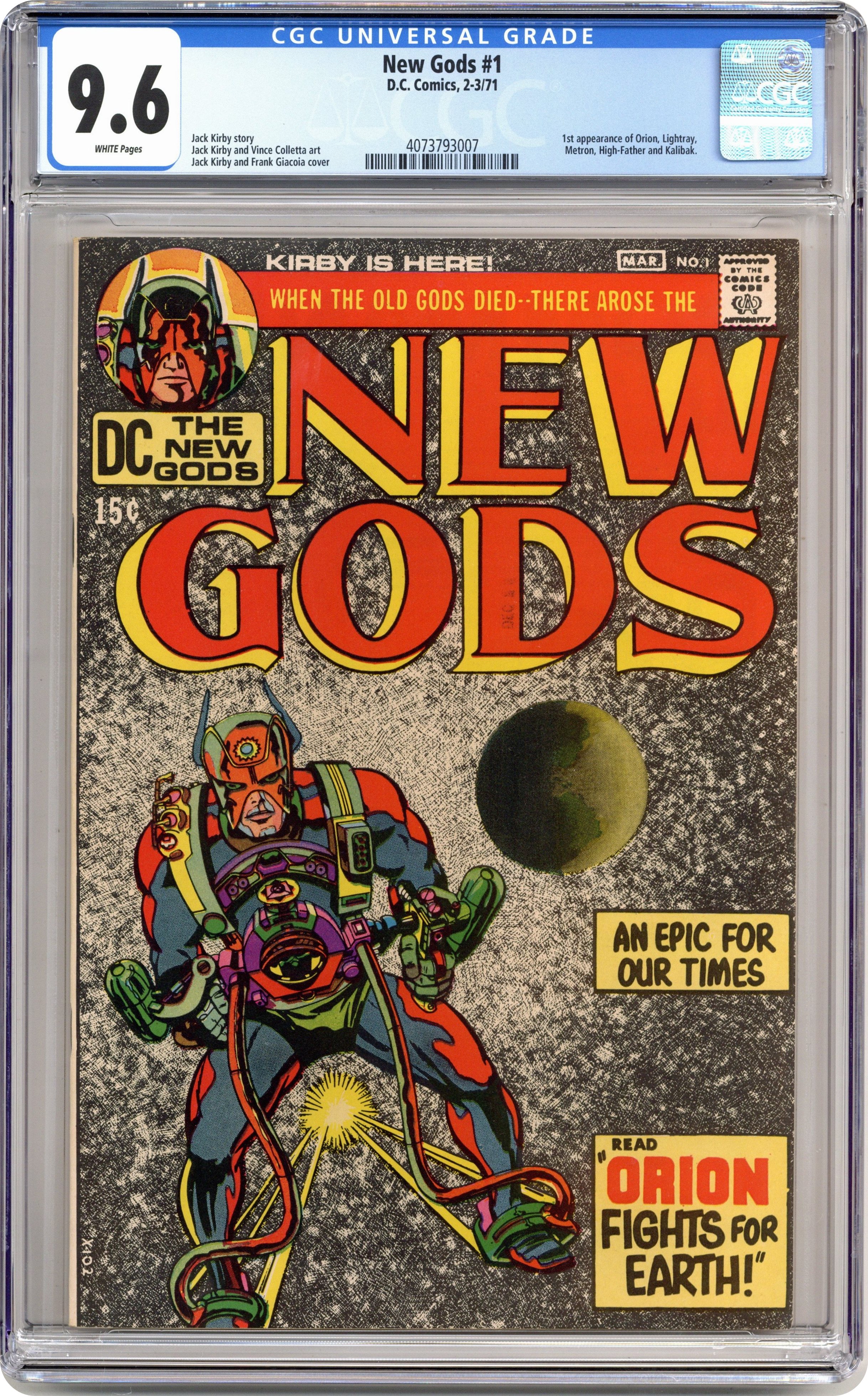 Ended Apr 19 2023 Winning Bid $477 Cover pencils by Jack Kirby, inks by Frank Giacoia. Orion Fights for Earth!, script and pencils by Jack Kirby, inks by Vince Colletta; Orion frees Lanza, Shane, Lincoln, and Lockman from Darkseid. One-page text feature, "A Visit With Jack Kirby" by Marv Wolfman. 36 pgs. $0.15. Cover price $0.15. Grade: CGC 9.6 explanation of grade Condition: Used (collectible)