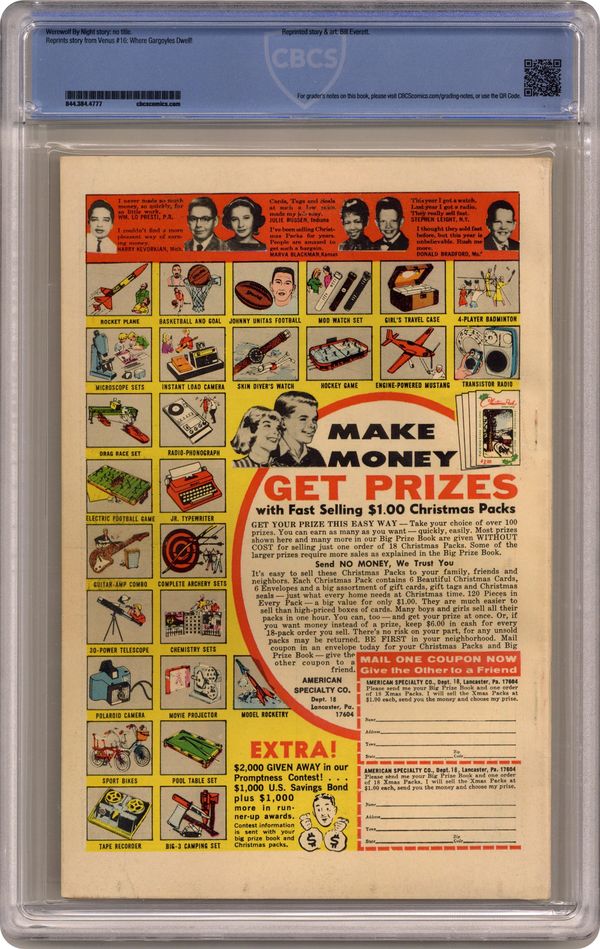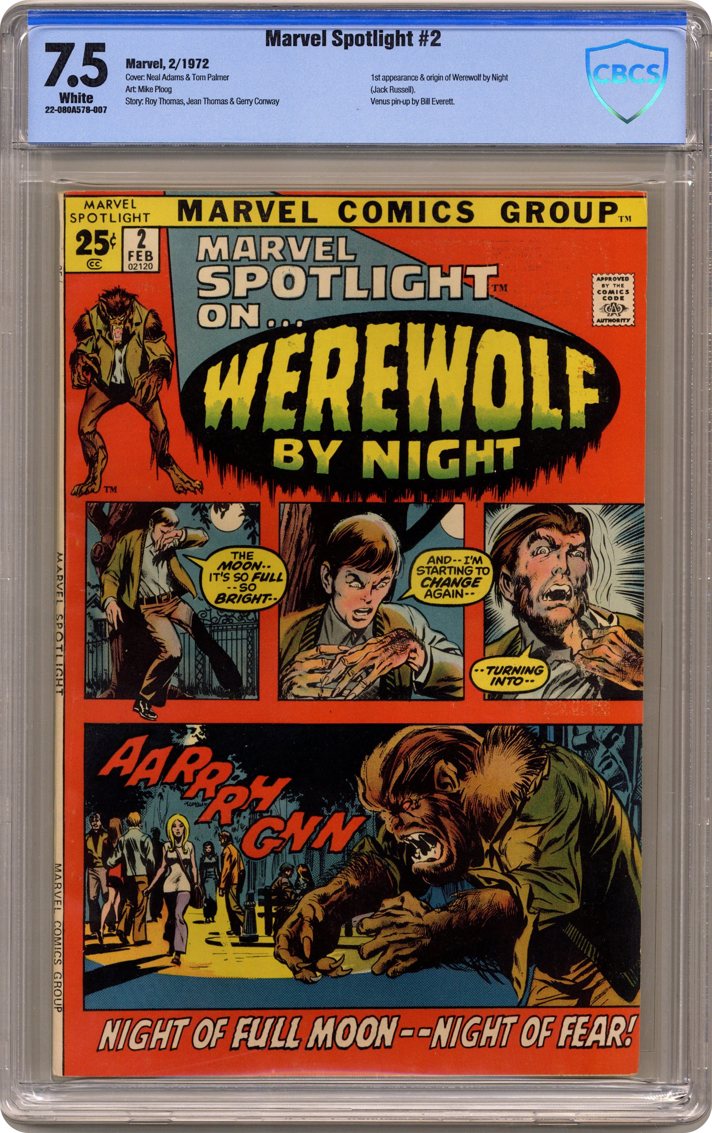 Ended Oct 23 2023 Winning Bid $385 52-page giant. Origin and first appearance of Werewolf By Night. Cover pencils by Neal Adams, inks by Tom Palmer. First Night, script by Roy Thomas (plot); Jean Thomas (plot), and Gerry Conway (script), art by Mike Ploog; Jack learns of the family curse on his eighteenth birthday from his mother on her deathbead; Jack begins to believe that his step-father had his mother killed. House ad for Venus, art by Bill Everett. Where Gargoyles Dwell! starring Venus, script and art by Bill Everett. 52 pages, full color. Cover price $0.25. Grade: CBCS 7.5 explanation of grade Condition: Used (collectible)