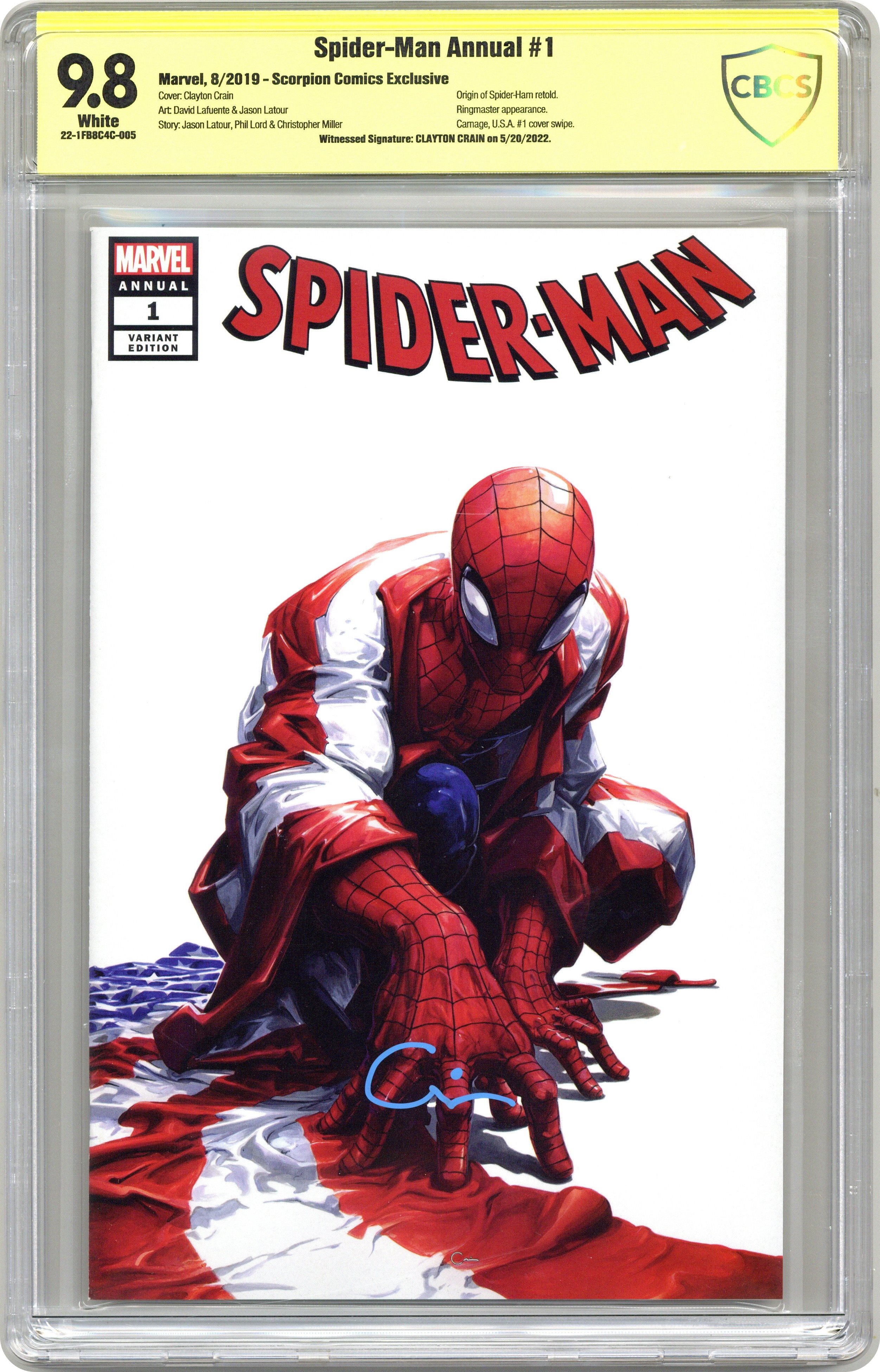 Spider-Man Annual (2019 Marvel) Presents Peter Porker The Spectacular Spider-Ham 1SCORPION.A CBCS 9.8 SS Clayton Crain