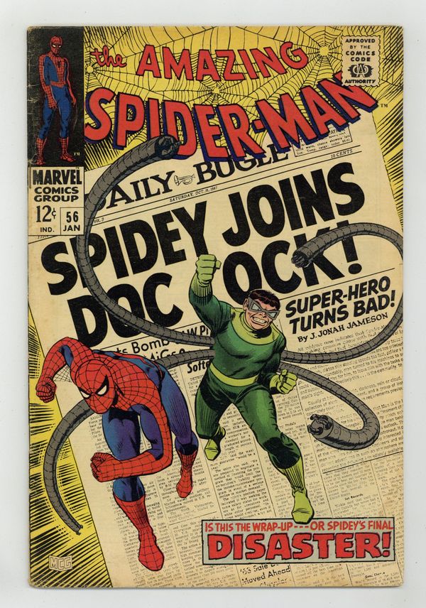 Doctor Octopus appearance and the first appearance of Capt. Stacy in "Disaster" script by Stan Lee, pencils by John Romita Sr., inks by Mike Esposito as "Mickey Demeo." Spidey has amnesia, and Doc Ock convinces him that they are partners! Will he fall for it? Or just go along until his memory comes back? Romita cover. Reprinted in Marvel Tales # 41. 36 pgs. Cover price $0.12. Grade: VG- 3.5 explanation of grade Condition: Used (collectible)
