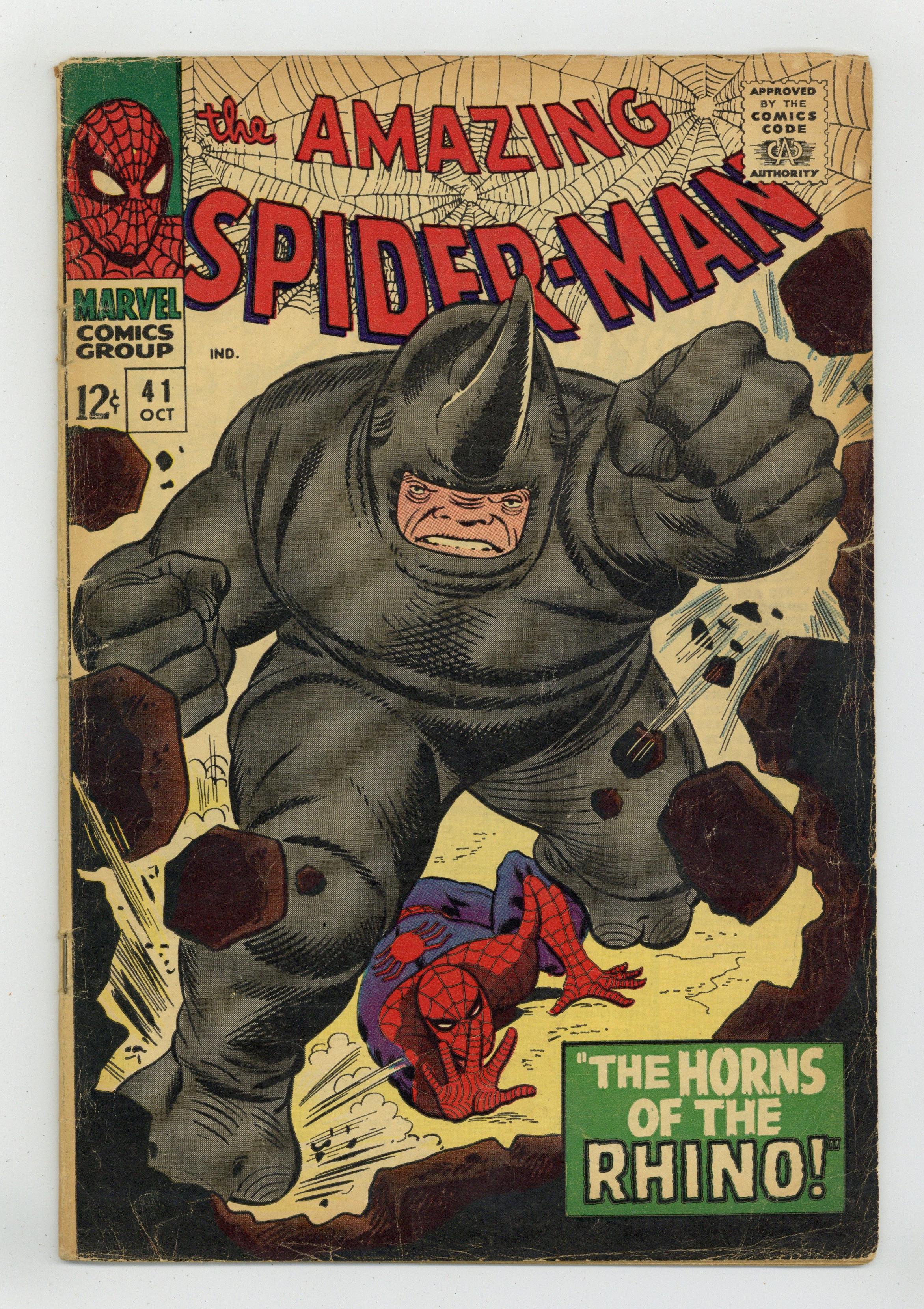Cover pencils by John Romita Sr., inks by Mike Esposito and John Romita (touch-ups). First appearance of the Rhino in The Horns of the Rhino!, script by Stan Lee, pencils by John Romita Sr., inks by Mike Esposito (as M. Demeo) and John Romita Sr. (touch-ups); The Rhino attempts to kidnap John Jameson to turn him over to foreign powers that want his secrets about the U.S. space program; Spider-Man manages to stop the Rhino. Reprinted in Marvel Tales # 30 and 190. 36 pgs., full color. $0.12. Cover price $0.12. Grade: GD/VG 3.0 explanation of grade Condition: Used (collectible)