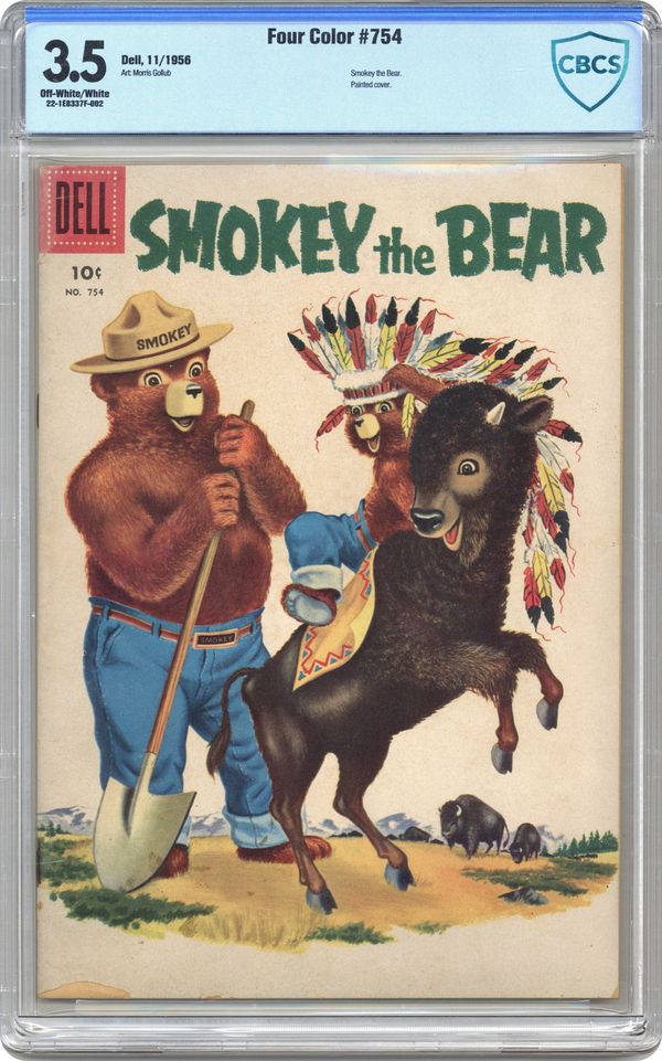 Ended Sep 5 2022 Winning Bid $45 Indicia title is "SMOKEY THE BEAR, No. 754." Painted cover art. Trouble on the Hoof; Specs gets into a feud with a herd of buffalo and finds himself in danger when he gets pinned beneath rocks in the path of a grass fire. The Smokejumpers; Smokey teaches a Specs and a group of beavers how to become "smokejumpers"--fire fighters who parachute into remote fire areas. The Meddler; A puma causes problems when he scares the beavers that Smokey needs to cut down some trees. All interior art by Morris Gollub. 36 pages, full color. Cover price $0.10. Grade: CBCS 3.5 explanation of grade Condition: Used (collectible)