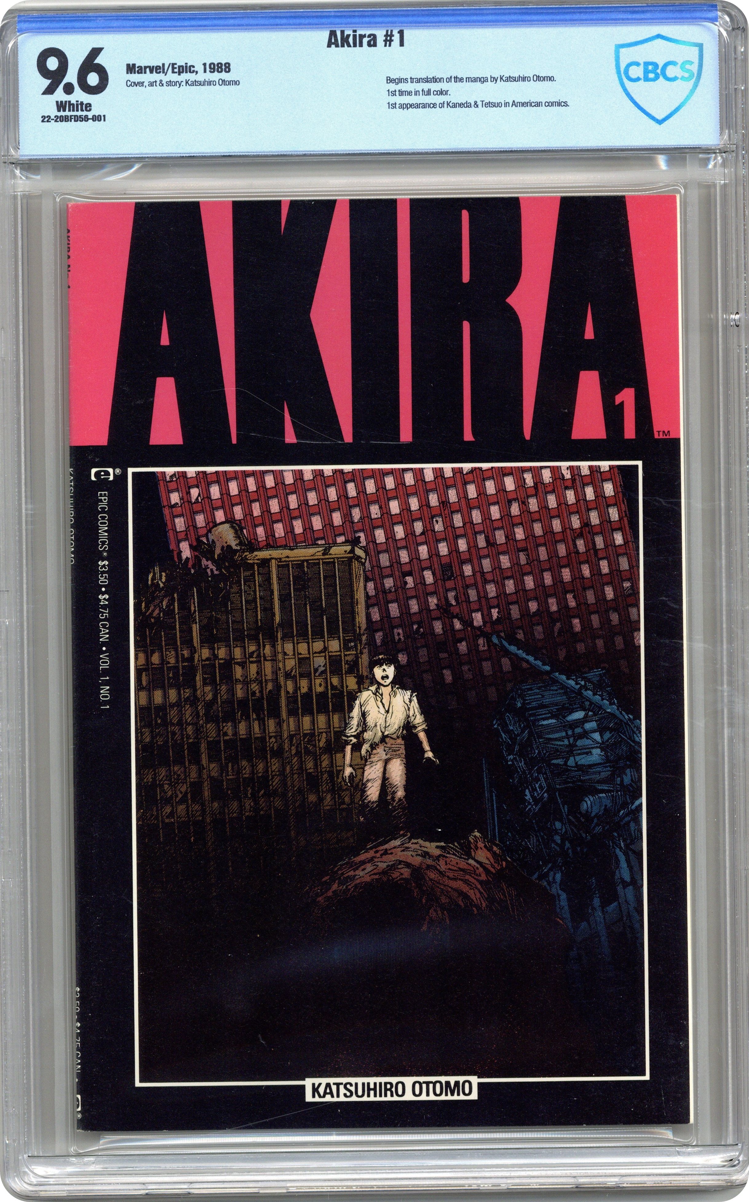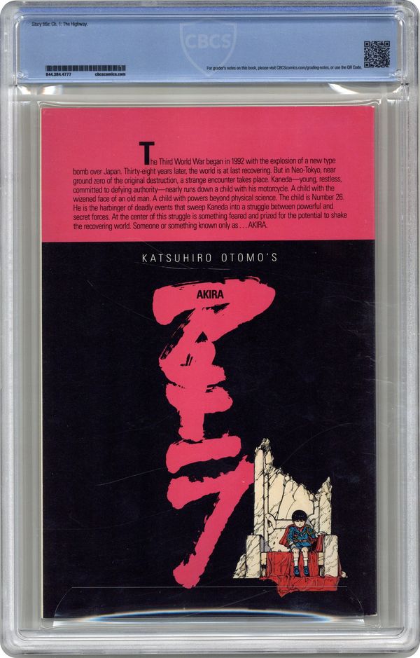 Ended Apr 14 2023 Winning Bid $182 1st printing. Here it is – the first English translation of Katsuhiro Otomo's influential manga series, paving the way for the manga and anime craze to blossom in the English-speaking world. Decades after a mysterious explosion destroys Tokyo, teen bikers Tetsuo and Kaneda encounter a child with the face of an old man; his strange powers hold the key to the mystery. Story, art and cover by Otomo. Color by Steve Oliff, who pioneered the use of computer coloring with this series. Also includes an introductory article by Archie Goodwin. Mature readers. Cover price $3.50. Grade: CBCS 9.6 explanation of grade Condition: Used (collectible)