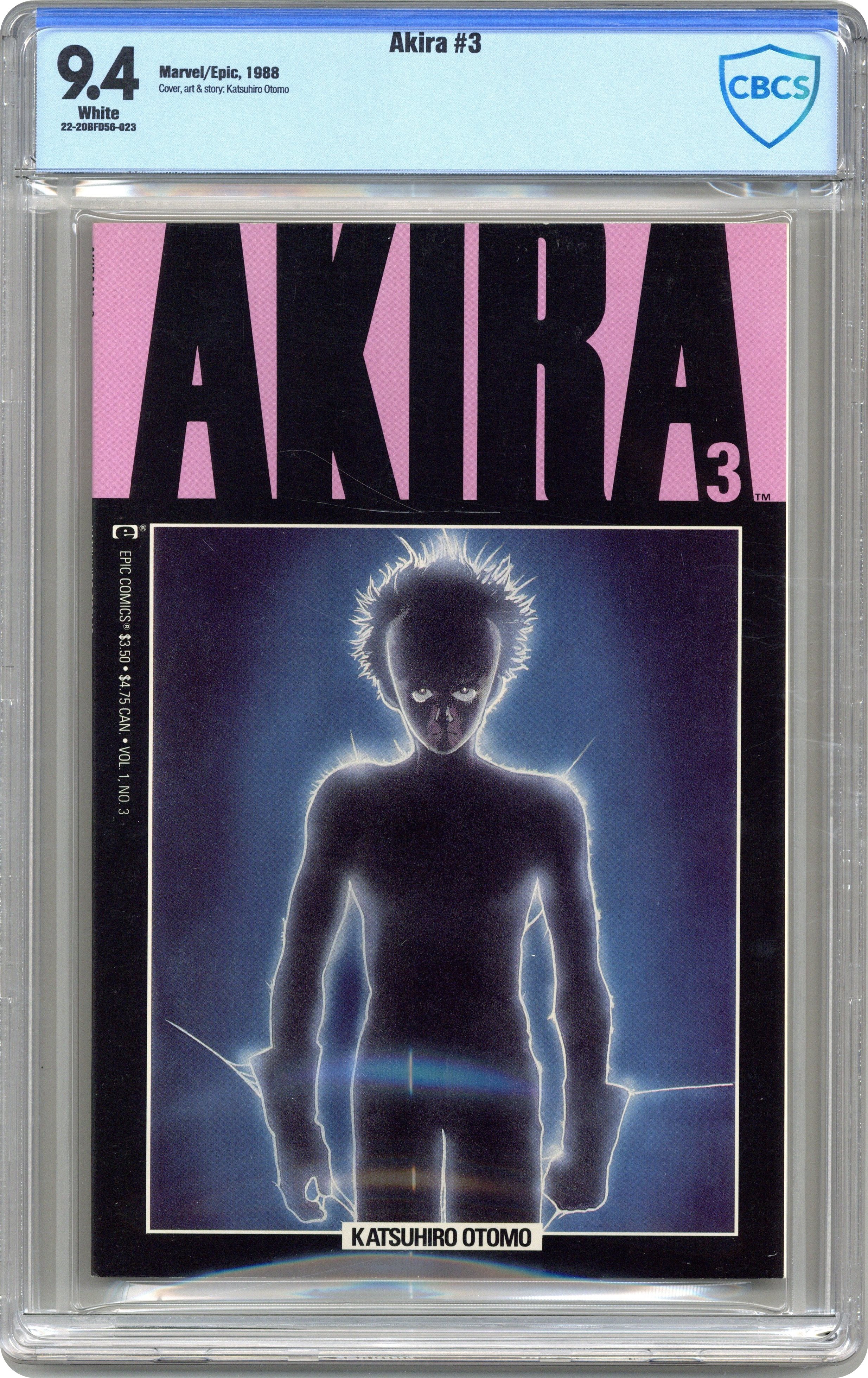 Ended Sep 20 2022 Winning Bid $25 Kaneda gets caught up in the rebels' attempt to find the mysterious Akira; meanwhile, Tetsuo is going through some strange and terrifying changes. The first English translation of Katsuhiro Otomos influential manga series. Story, art and cover by Otomo. Color by Steve Oliff. Also includes an article about the Akira anime. Mature readers. Cover price $3.50. Cover price $3.50. Grade: CBCS 9.4 explanation of grade Condition: Used (collectible)