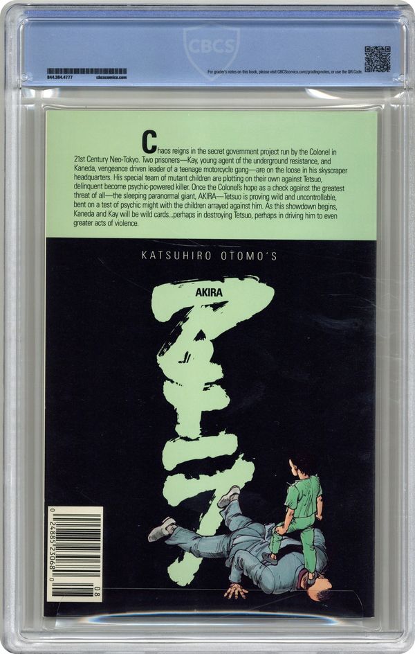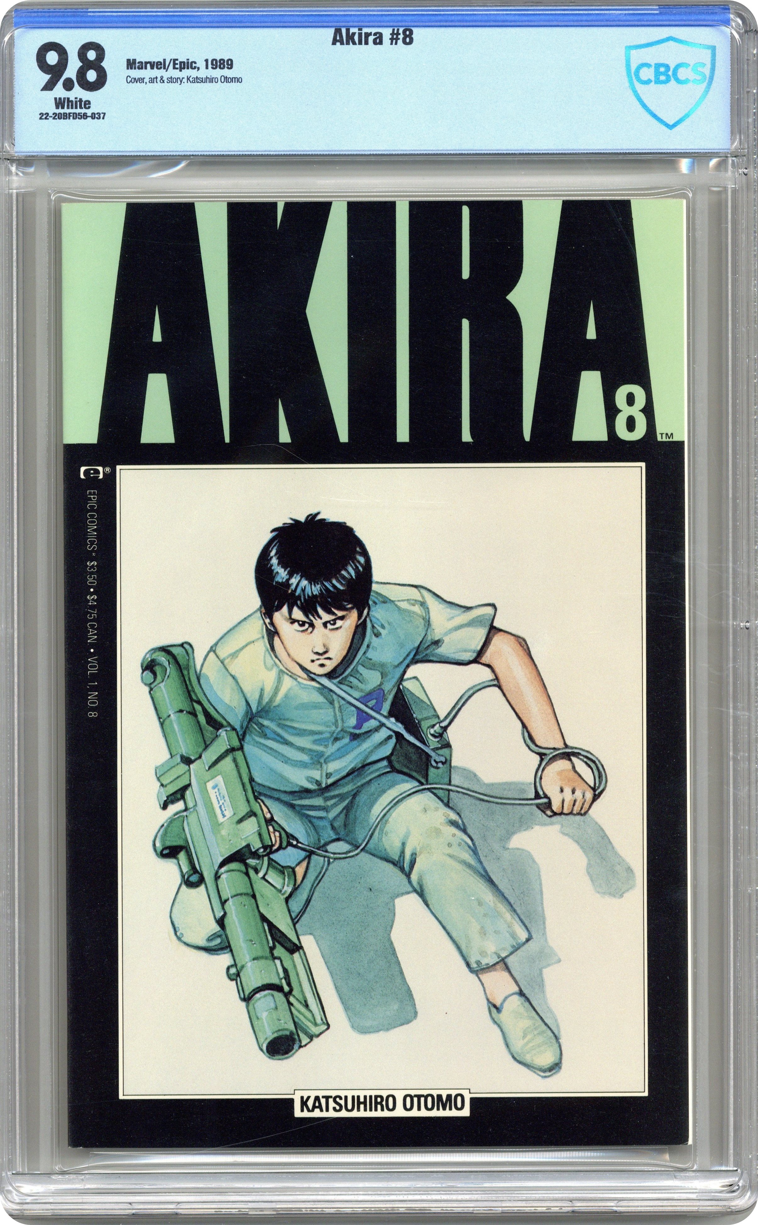 Ended May 29 2023 Winning Bid $62 Maddened by his ever-growing psychic powers, Tetsuo resists the efforts of the Colonel and his government troops, as well as Kaneda and Kay, in his drive to awaken Akira from suspended animation. The first English translation of Katsuhiro Otomos influential manga series. Story, art and cover by Otomo. Color by Steve Oliff. Mature readers. Cover price $3.50. Cover price $3.50. Grade: CBCS 9.8 explanation of grade Condition: Used (collectible)