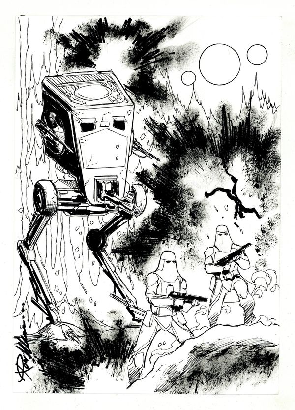 AT-ST and Snow Troopers Sketch by Ron Williams