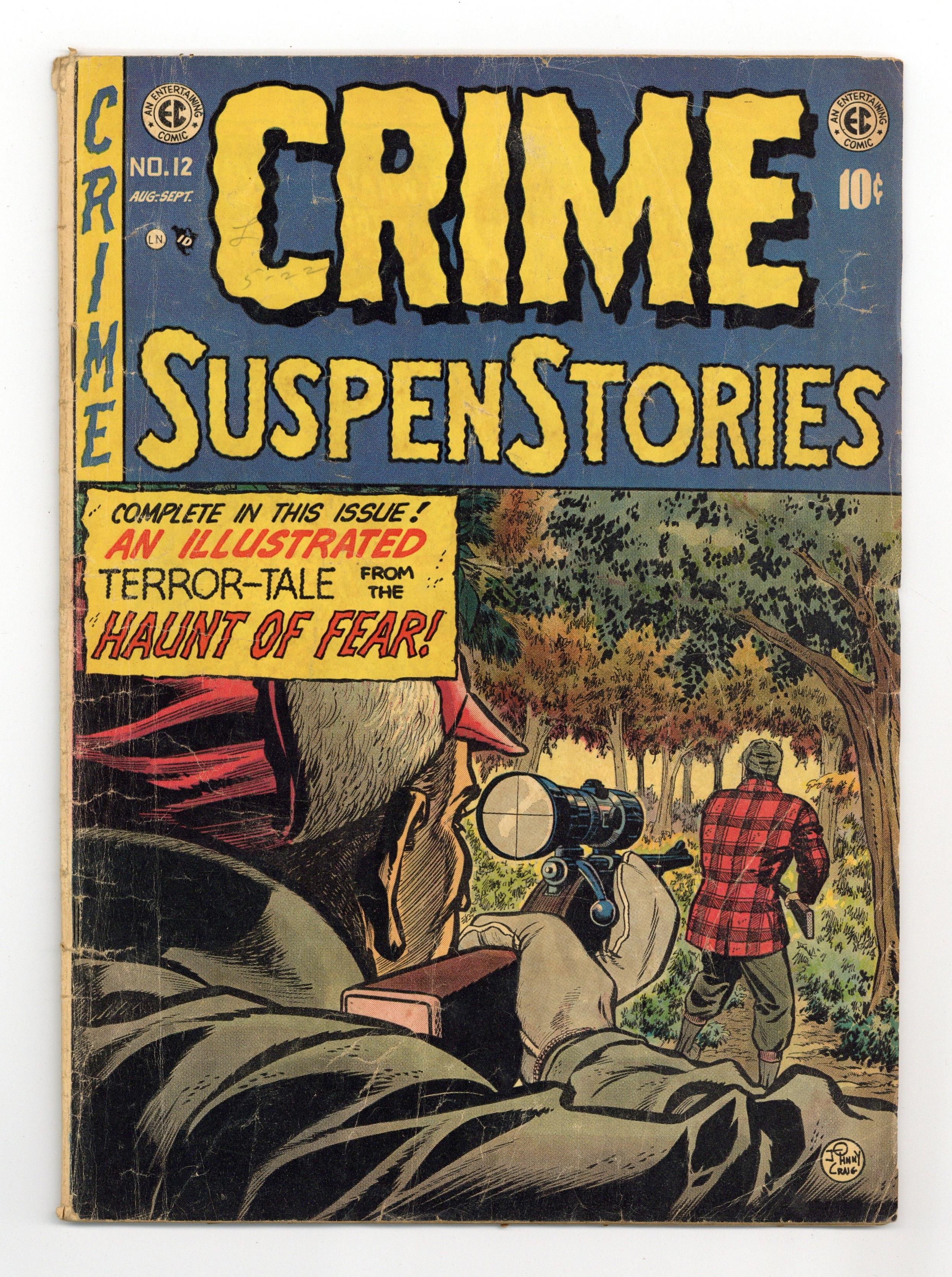 Cover art by Johnny Craig. "The Execution!", script and art by Johnny Craig; A man stops for a standed motorist who has skidded into a snowbank; At about the same time, a young woman is murdered, and from the description of the killer and the getaway car, it seems that the man who aided the stranded motorist is guilty. "Murder the Lover!", script by Al Feldstein, art by Jack Davis; A businessman, Ken Martin, comes home one evening and discovers his wife in the arms of his best friend, Walt; Ken swears revenge, so he calls the man up and suggests the two go moose hunting together, while secretly planning to "accidently" kill him. "Murder the Husband!", script by Al Feldstein, art by Jack Davis; Walter is madly in love with Kenneth's wife, but he knows his friend will never get a divorce, so he decides to kill him; When Kenneth invites Walter on a moose hunting trip, Walter agrees, and the pair go out in a boat loaded with ropes and weights. "Trap!" text story by Al Feldstein. "Snooze to Me!", script by Al Feldstein, art by Jack Kamen; Herbert comes home late one night and his waiting wife; Suspecting that he is having an affair, she confronts him, shooting down all of his alibis; She tells him to leave but has second thoughts and phones him to come back, but he refuses. "Paralyzed!", script by Al Feldstein, art by Graham Ingels (as Ghastly); A seemingly happily married couple actually hate one another, and the husband wants out of the 15-year marriage; The wife refuses; They get involved in an auto accident, and Gladys is paralyzed in the wreck. 36 pgs., full color. Cover price $0.10. Grade: GD 2.0 explanation of grade Condition: Used (collectible)