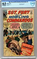 Ended Jan 11 2023 Winning Bid $82 Cover pencils by Jack Kirby. Midnight On Massacre Mountain, script by Stan Lee, pencils by Jack Kirby, inks by Dick Ayers; Fury and his Commandos are ordered in Italy where an army divison is bottled up behind Massacre Mountain. Our Howling Commandos meet Office of Strategic Services agent Reed Richards. That's right, the man that later will become Mister Fantastic of the Fantastic Four! 36 pgs. $0.12. Cover price $0.12. Grade: CBCS 6.5 explanation of grade Condition: Used (collectible)