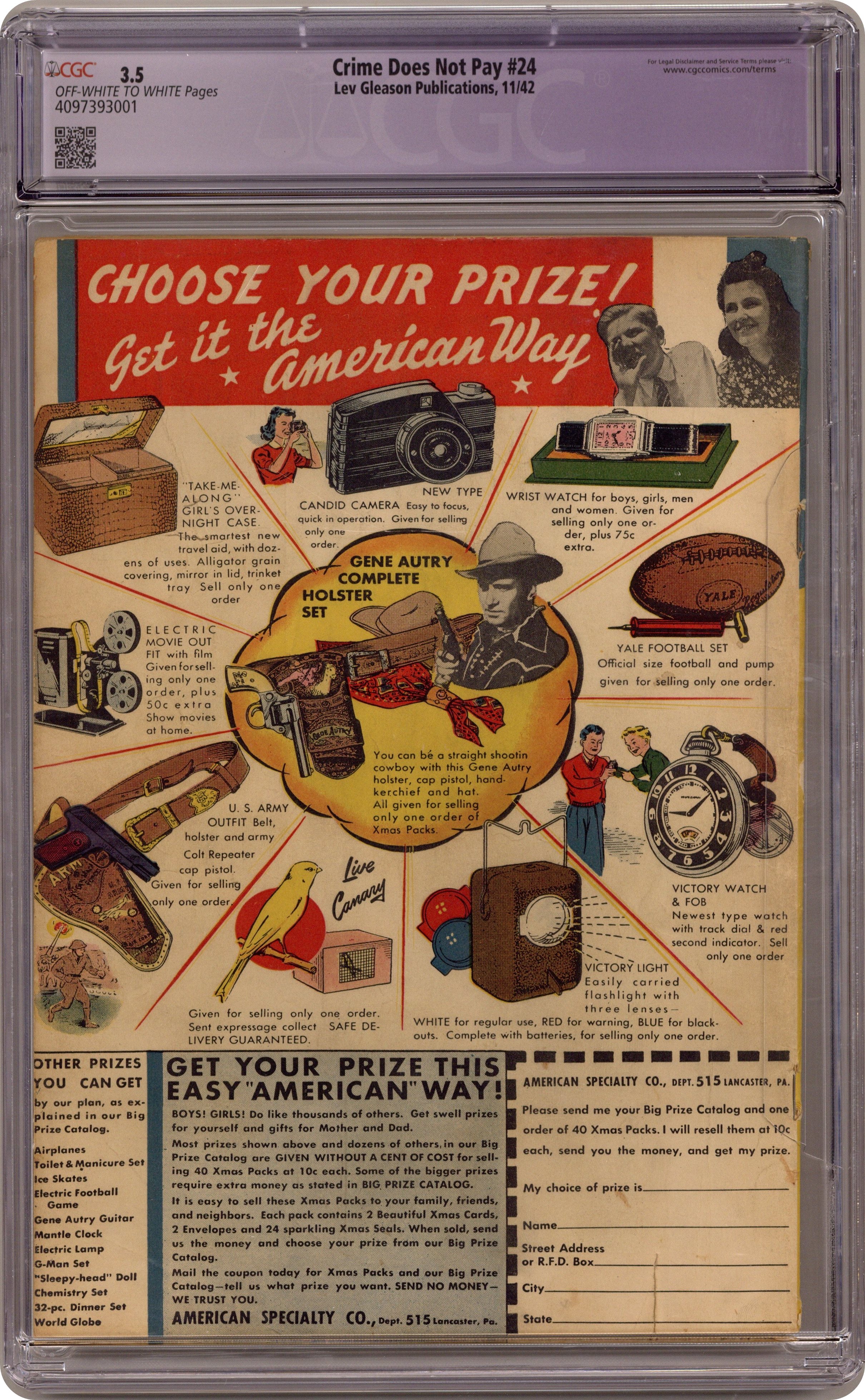 Published Dec 1942 by Lev Gleason.CGC 3.5
